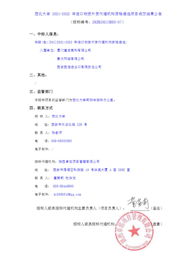 星空app官网2021-2022年进口物资外贸代理机构资格遴选项目成交结果公告