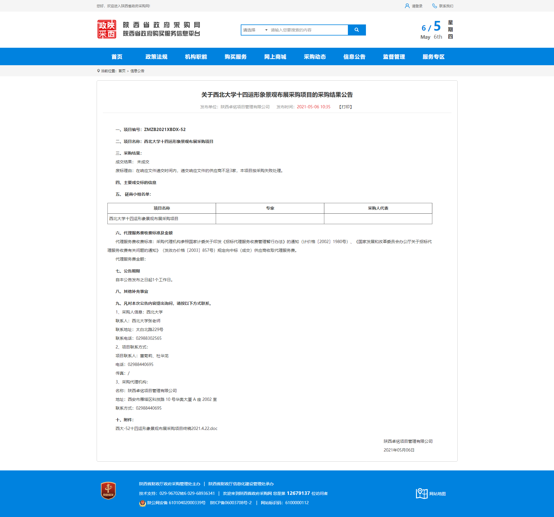关于星空app官网十四运形象景观布展采购项目的采购结果公告