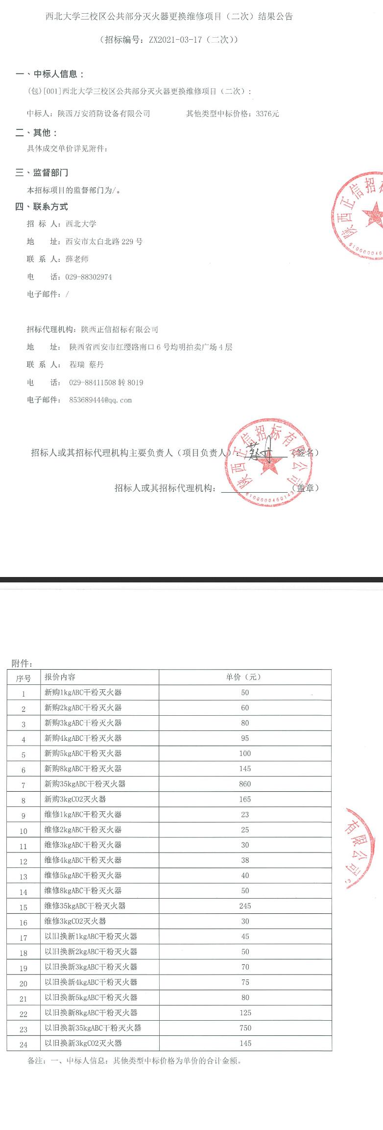 星空app官网三校区公共部分灭火器更换维修项目(二次)结果公告