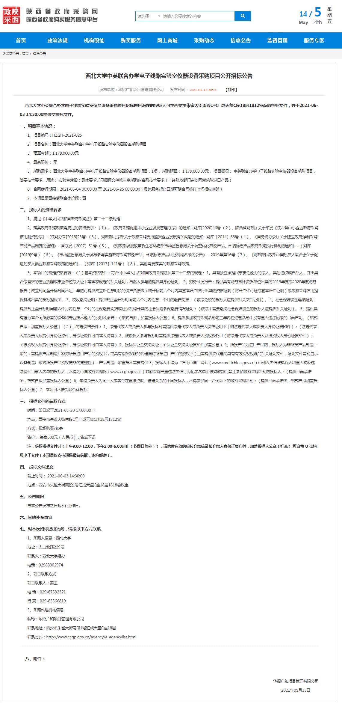 星空app官网中英联合办学电子线路实验室仪器设备采购项目公开招标公告
