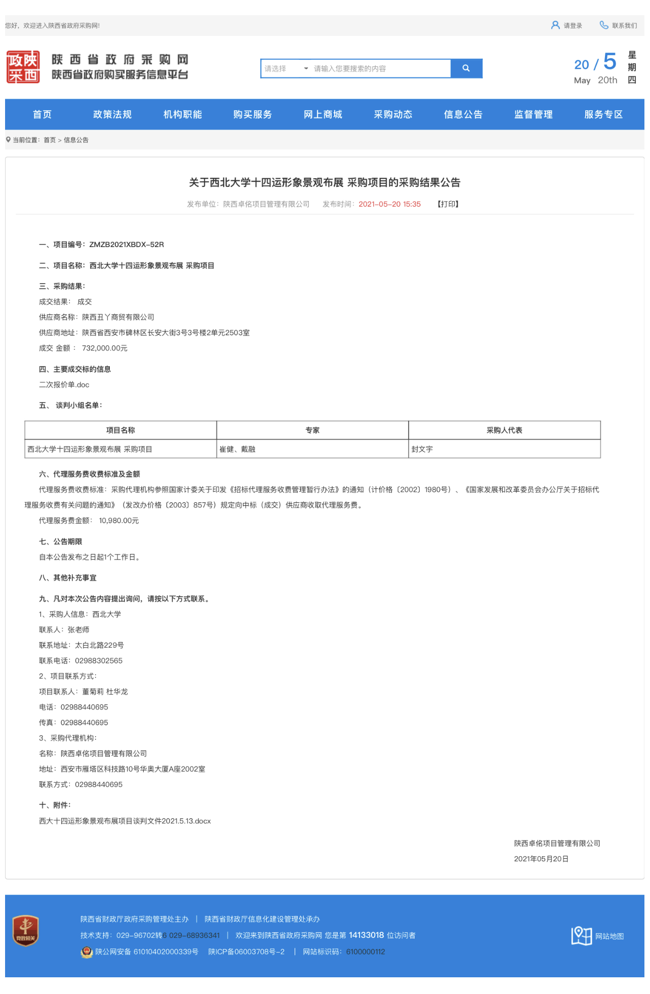 关于星空app官网十四运形象景观布展采购项目的采购结果公告
