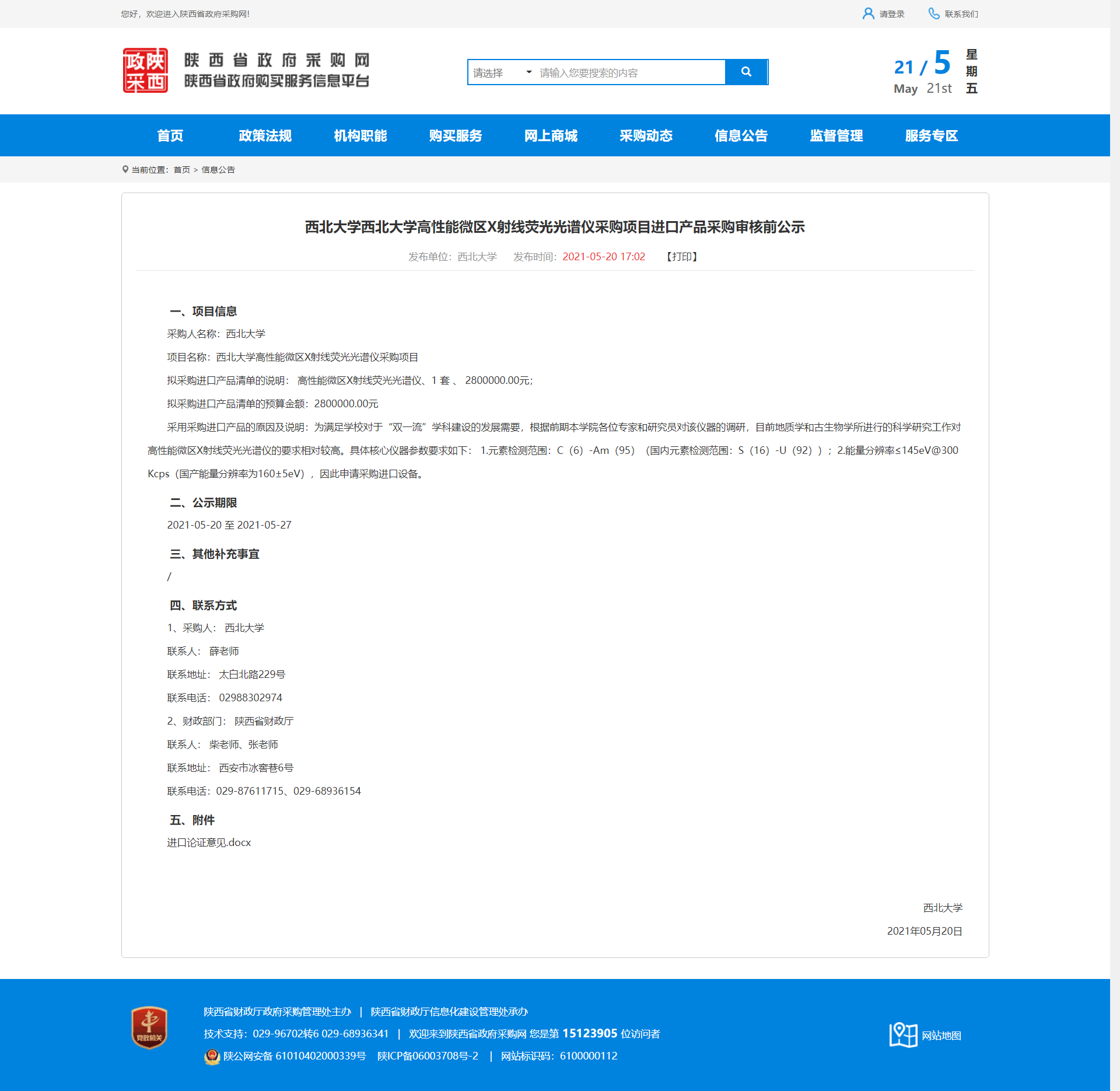 星空app官网高性能微区X射线荧光光谱仪采购项目进口产品采购审核前公示 作者: 编辑:薛利娟 时间:2021-05-21 原公告地址:http://www.ccgp-shaanxi.gov.cn/notice/noticeDetail.do?noticeguid=8a85be33791baa0f017988f95b141335