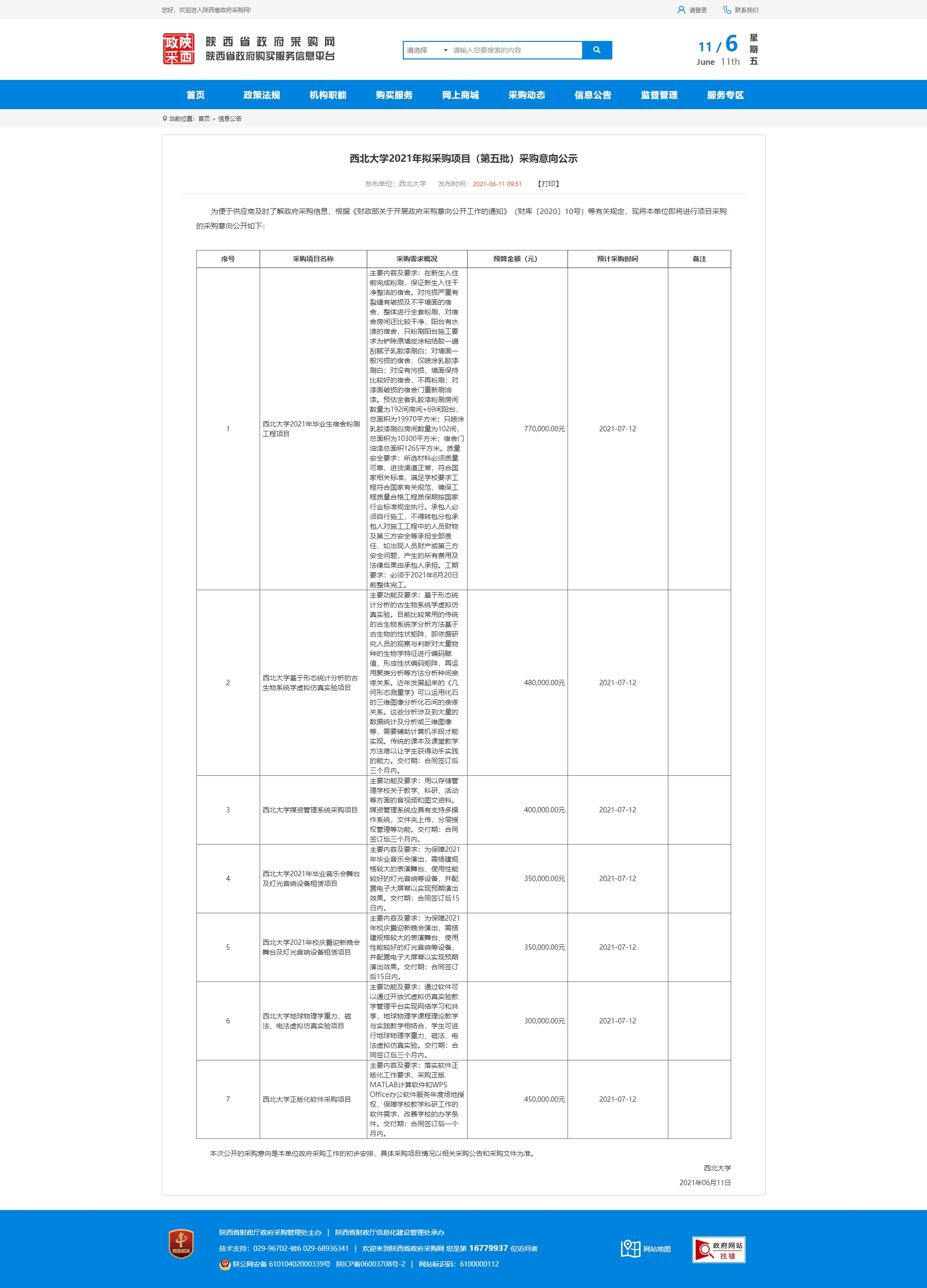 星空app官网2021年拟采购项目(第五批)采购意向公示