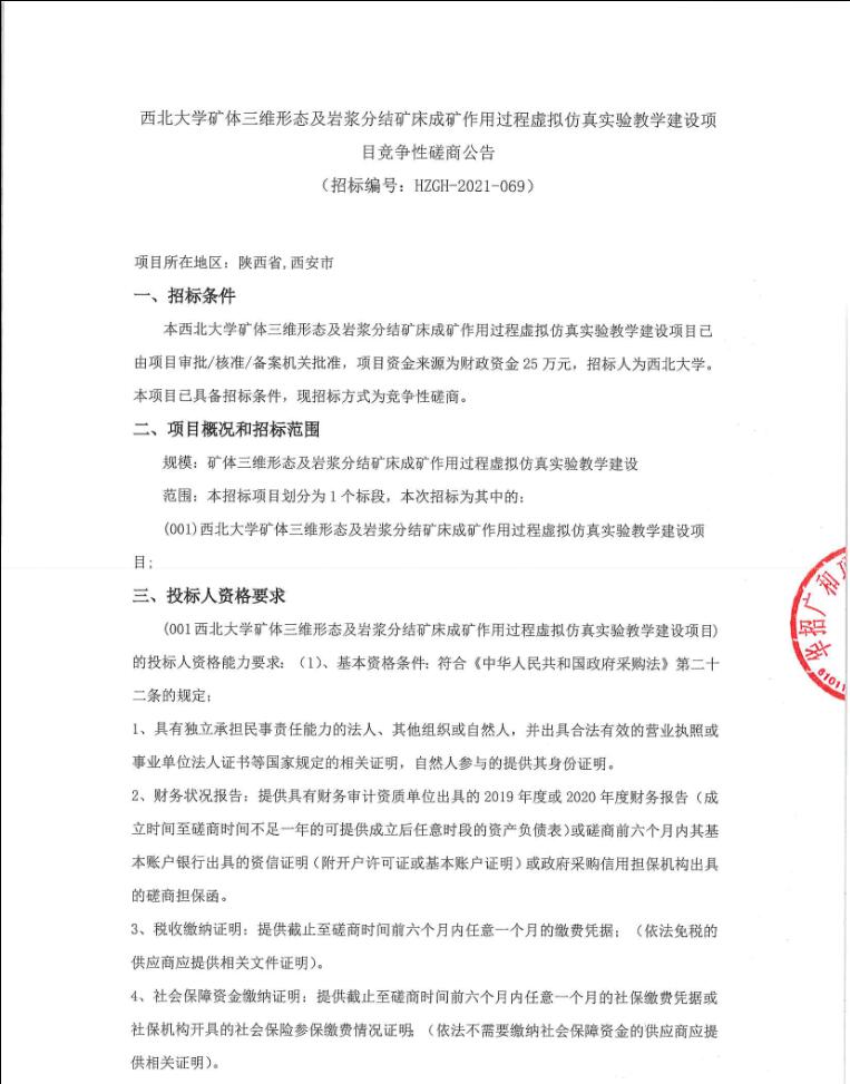 星空app官网矿体三维形态及岩浆分结矿床成矿作用过程虚拟仿真实验教学建设项目竞争性磋商公告