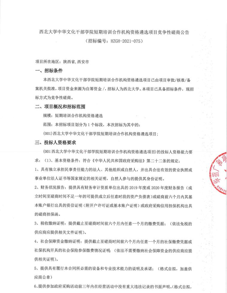 星空app官网中华文化干部学院短期培训合作机构资格遴选项目竞争性磋商公告