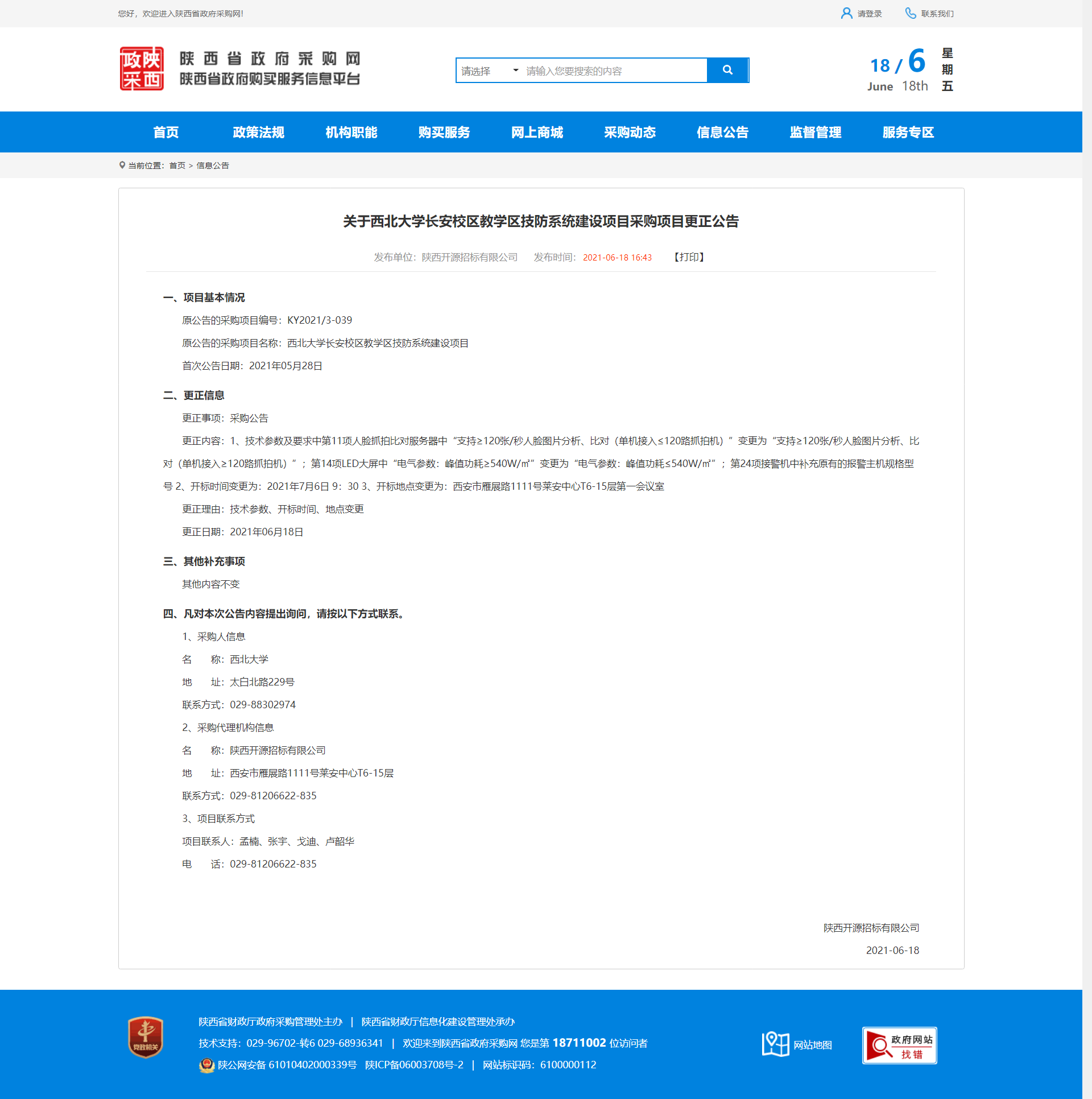 关于星空app官网长安校区教学区技防系统建设项目采购项目更正公告 作者: 编辑:采购与招标办公室 时间:2021-06-18 原公告地址:http://www.ccgp-shaanxi.gov.cn/notice/noticeDetail.do?noticeguid=8a85be3478a59799017a1e3c725d50d9