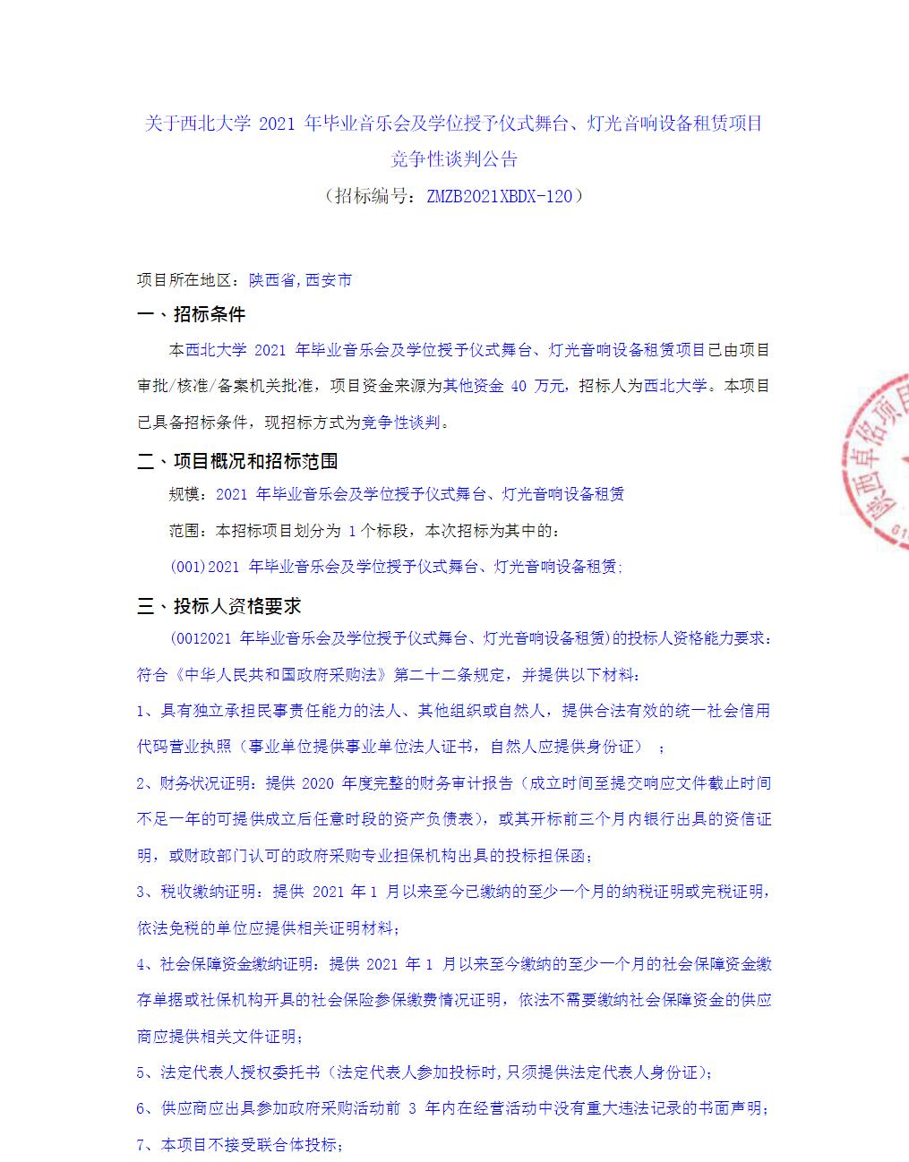 星空app官网2021年毕业音乐会及学位授予仪式舞台、灯光音响设备租赁项目竞争性谈判公告