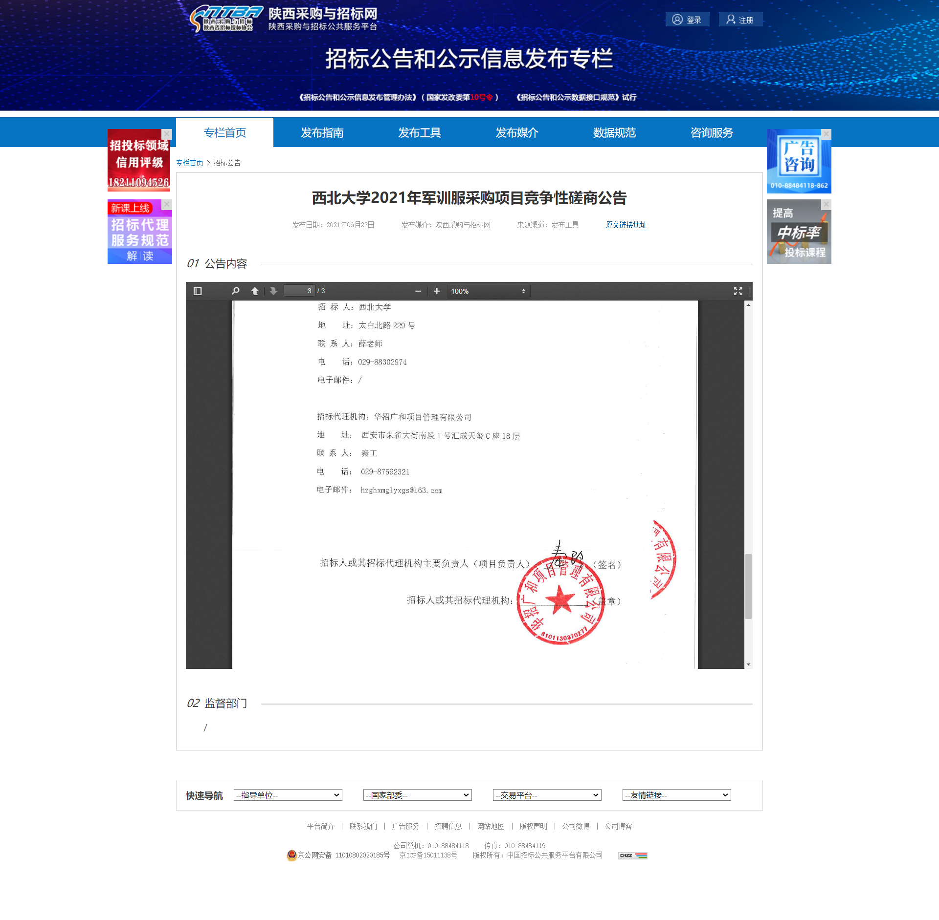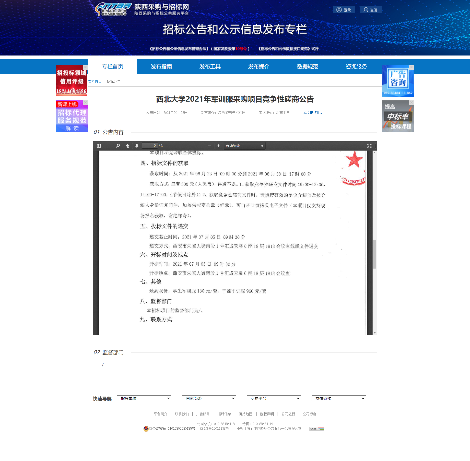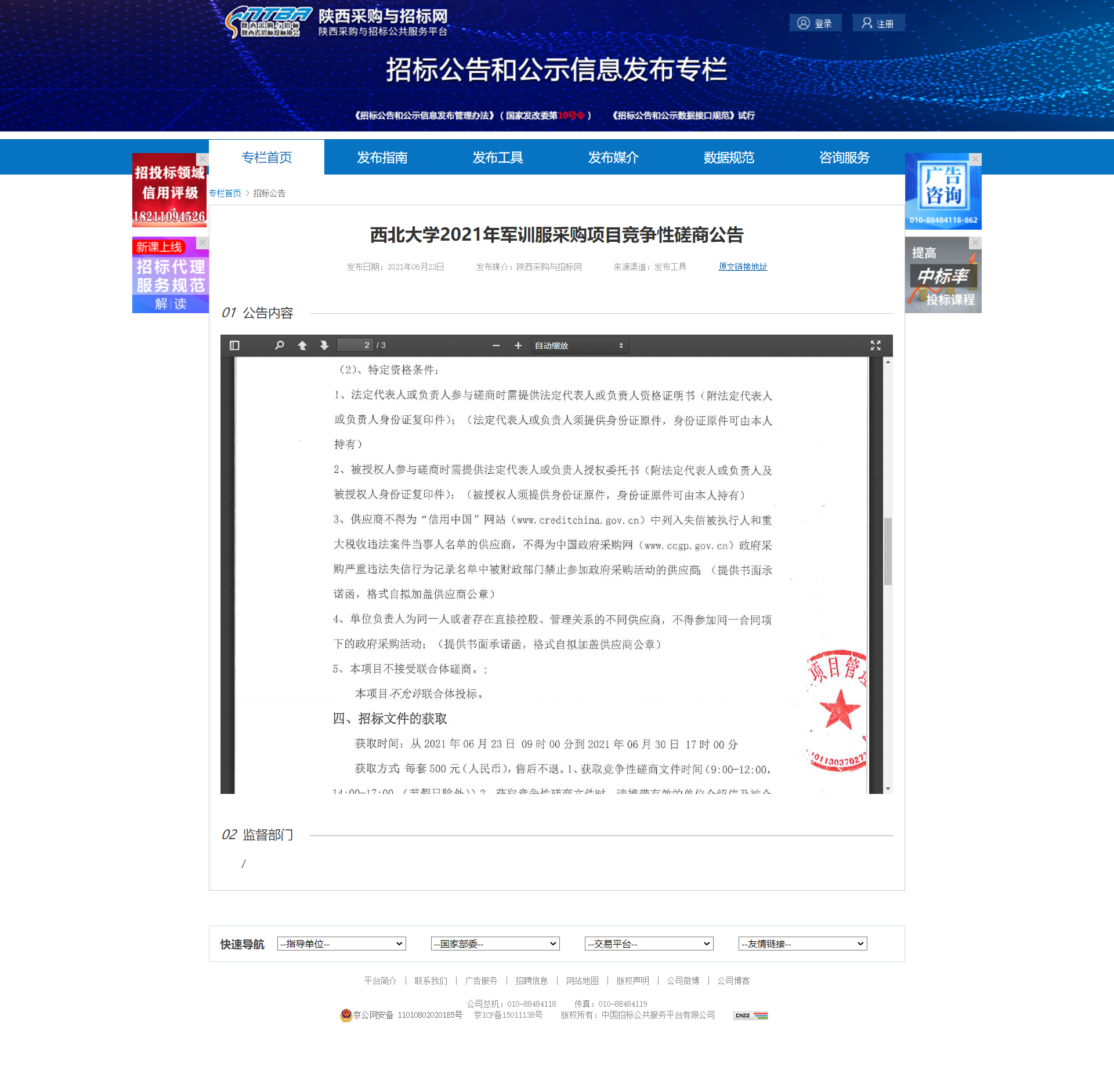 星空app官网2021年军训服采购项目竞争性磋商公告 作者: 编辑:采购与招标办公室 时间:2021-06-23 原公告地址:http://bulletin.sntba.com/biddingBulletin/2021-06-23/311022.html