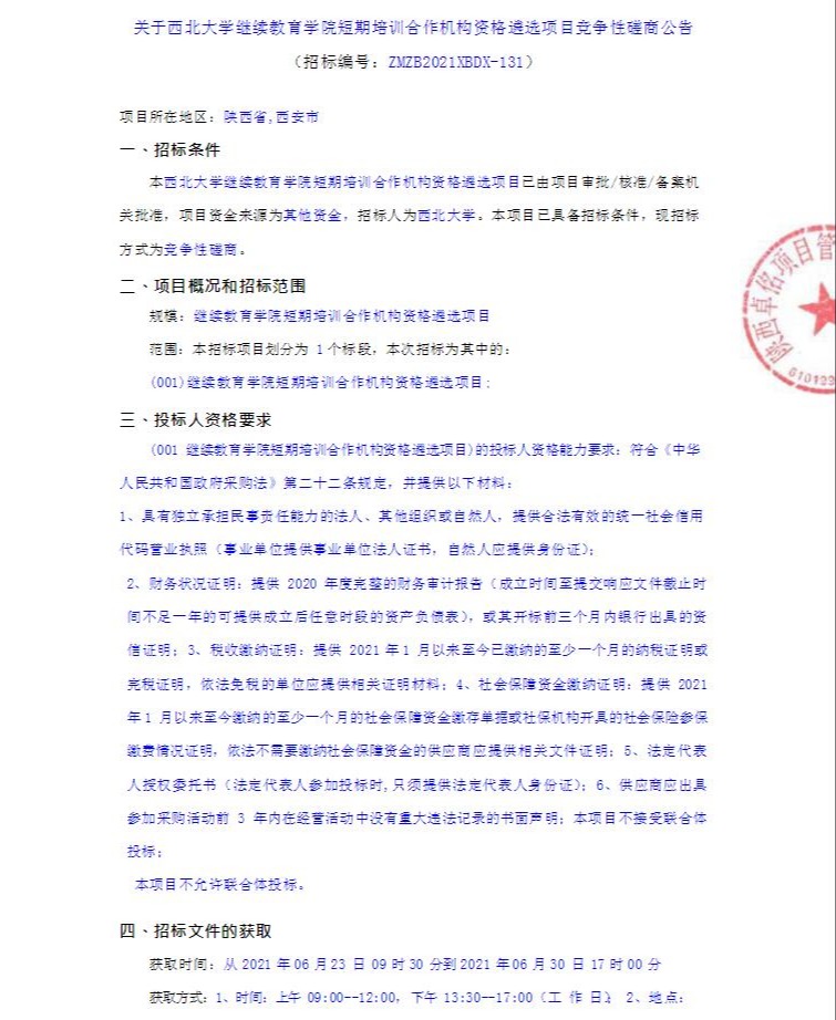 星空app官网继续教育学院短期培训合作机构资格遴选项目竞争性磋商公告