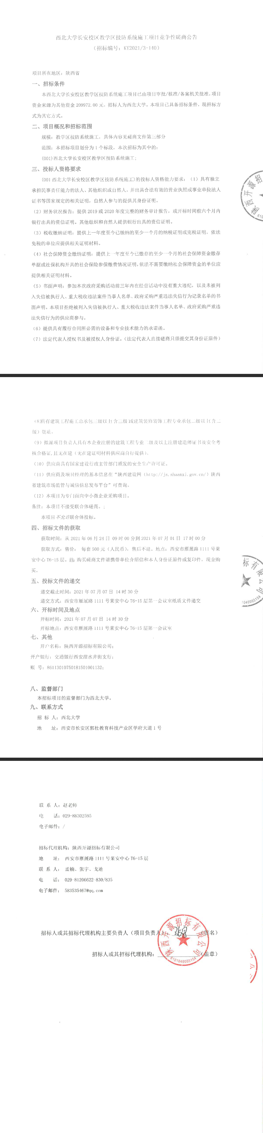 星空app官网长安校区教学区技防系统施工项目竞争性磋商公告