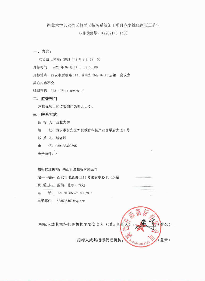 星空app官网长安校区教学区技防系统施工项目竞争性磋商更正公告