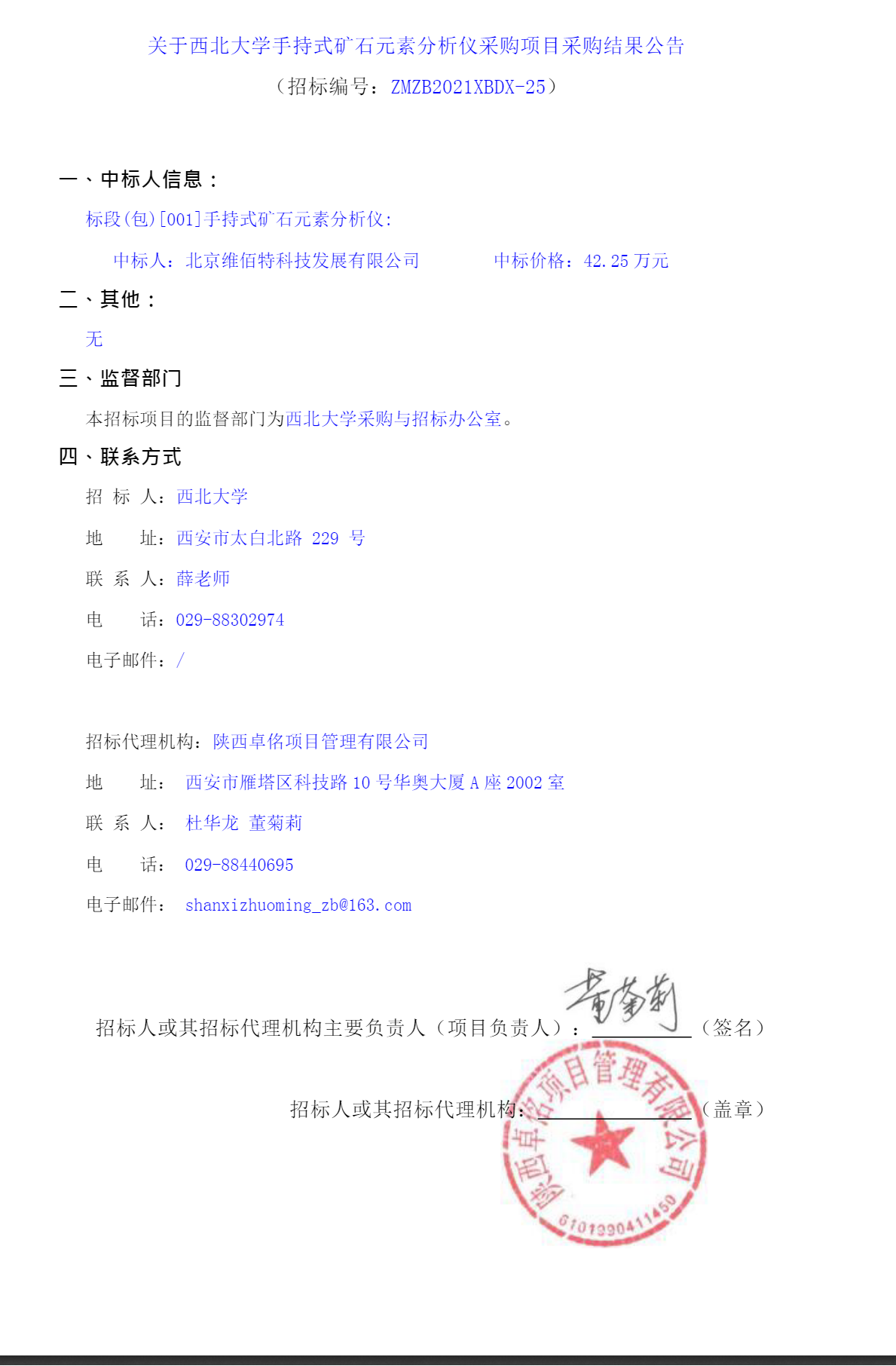 关于星空app官网手持式矿石元素分析仪采购项目采购结果公告