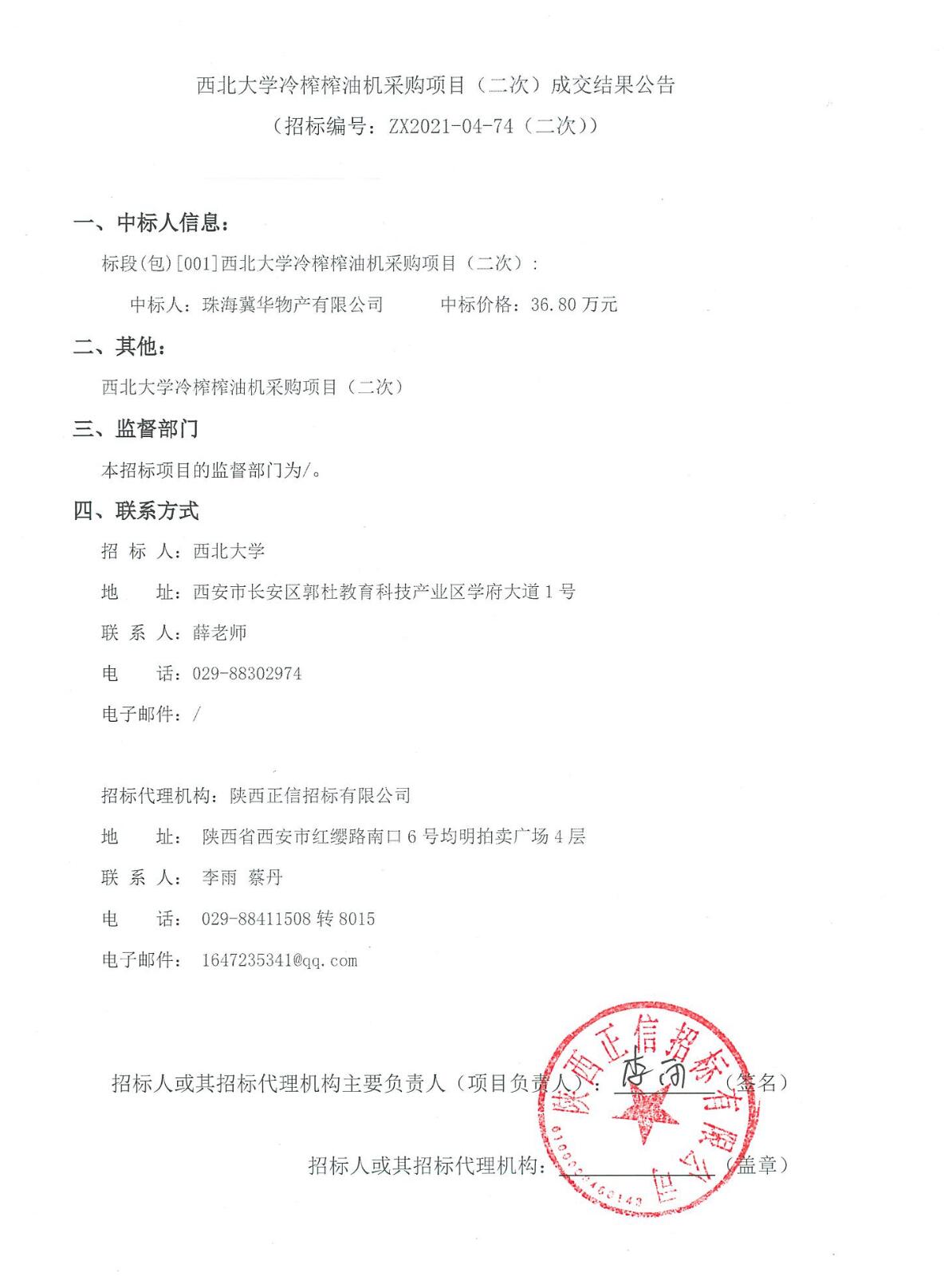 星空app官网冷榨榨油机采购项目(二次)成交结果公告
