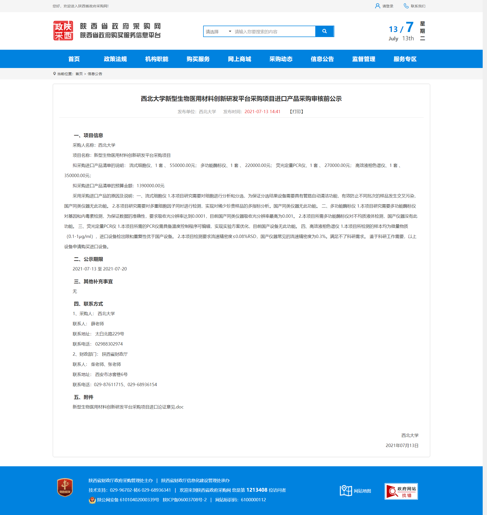 星空app官网新型生物医用材料创新研发平台采购项目进口产品采购审核前公示 作者: 编辑:采购与招标办公室 时间:2021-07-13 原公示地址:http://www.ccgp-shaanxi.gov.cn/notice/noticeDetail.do?noticeguid=8a85be317a79693c017a9e7fb1b57286