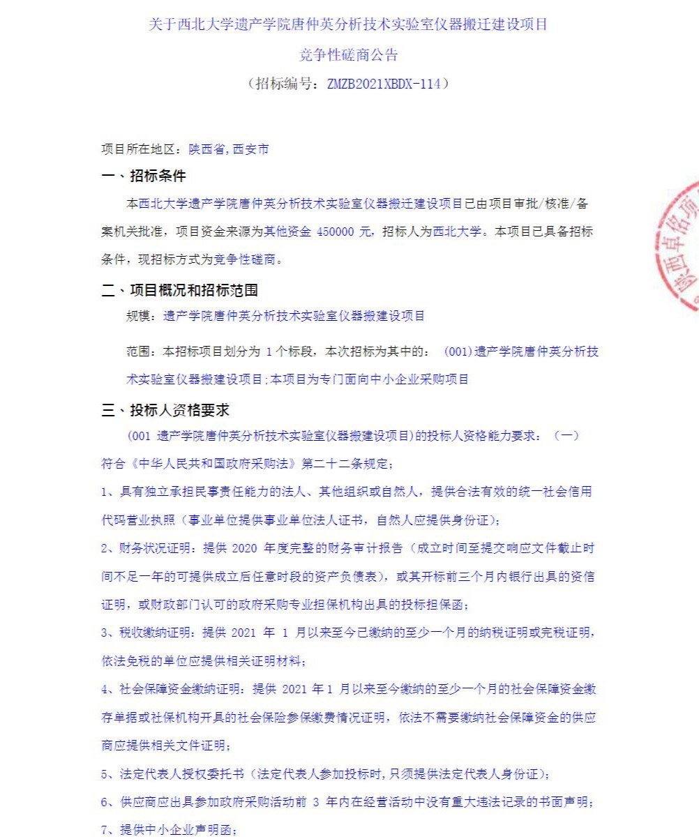 关于星空app官网遗产学院唐仲英分析技术实验室仪器搬迁建设项目竞争性磋商公告