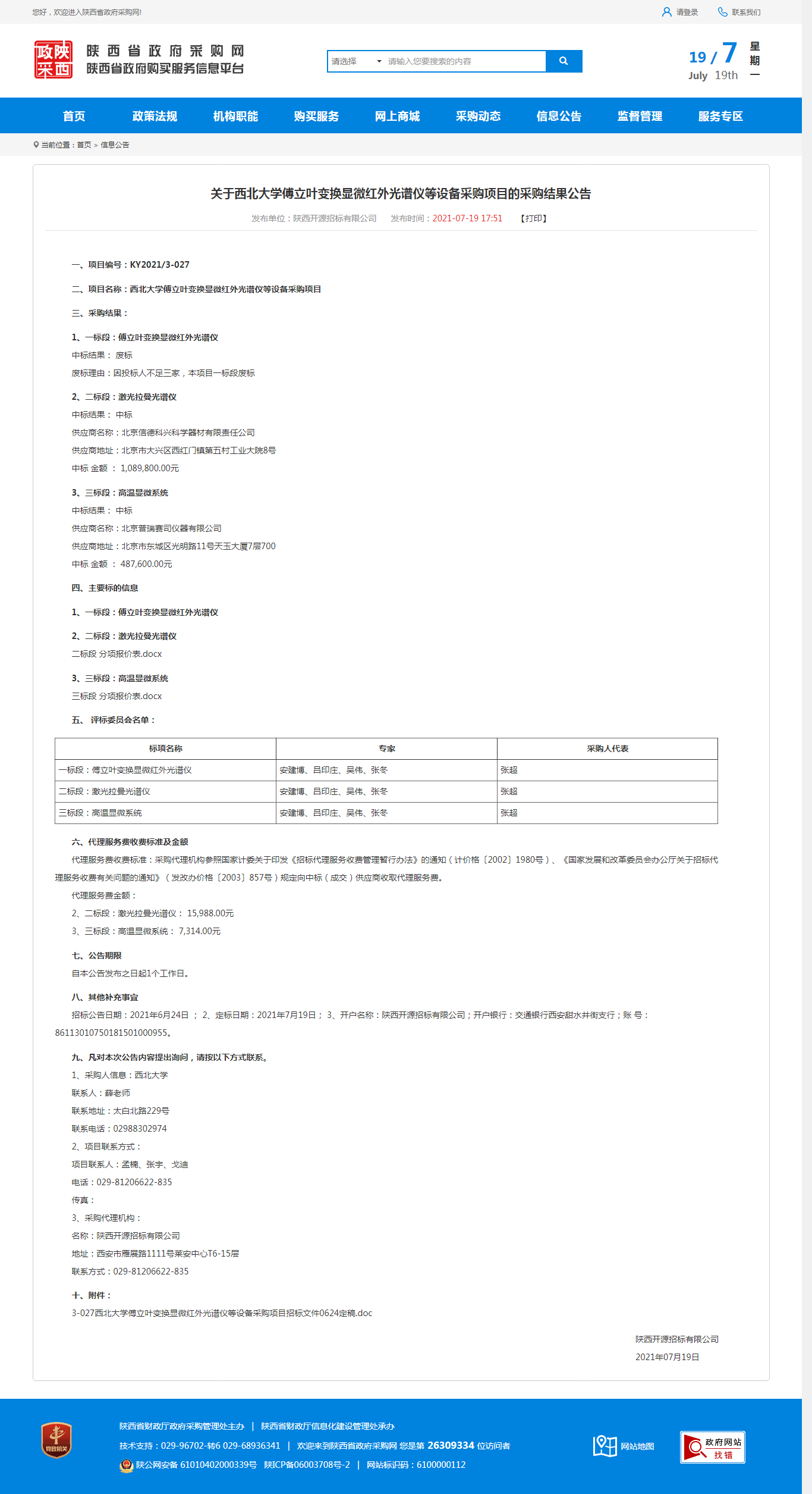 关于星空app官网傅立叶变换显微红外光谱仪等设备采购项目的采购结果公告 作者: 编辑:采购与招标办公室 时间:2021-07-19 原公告地址:http://www.ccgp-shaanxi.gov.cn/notice/noticeDetail.do?noticeguid=8a85be337a79620e017abdb0b9d25220