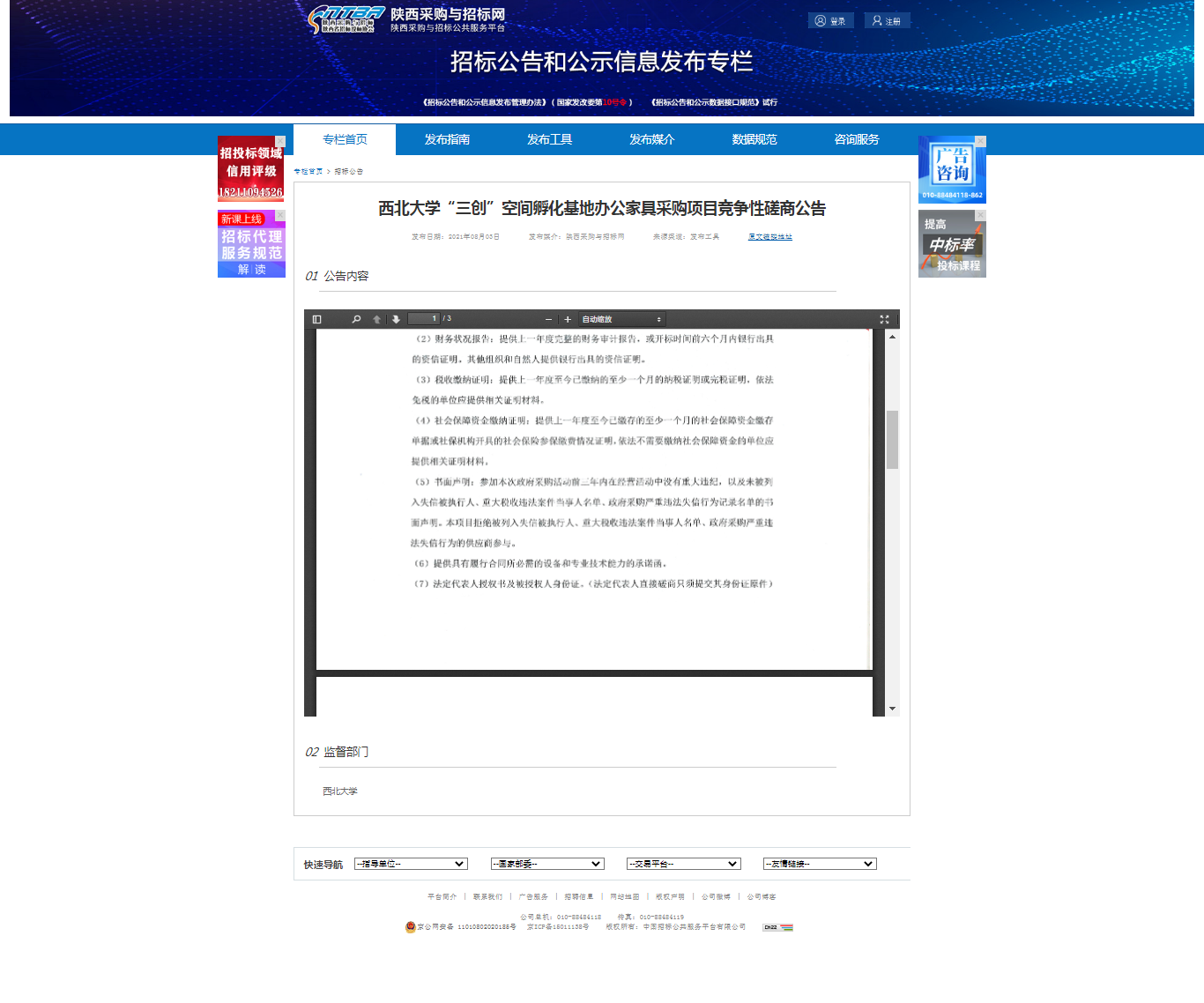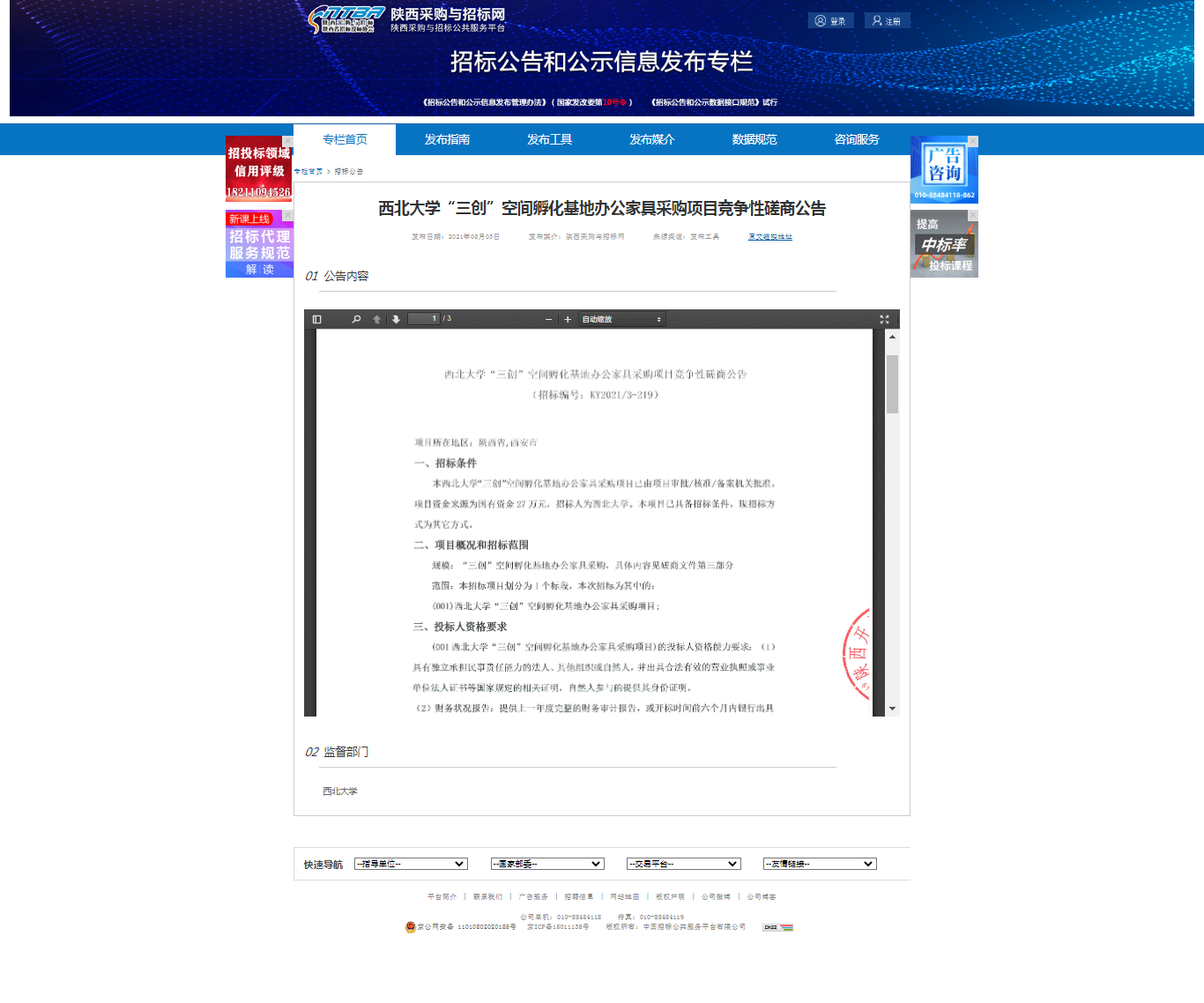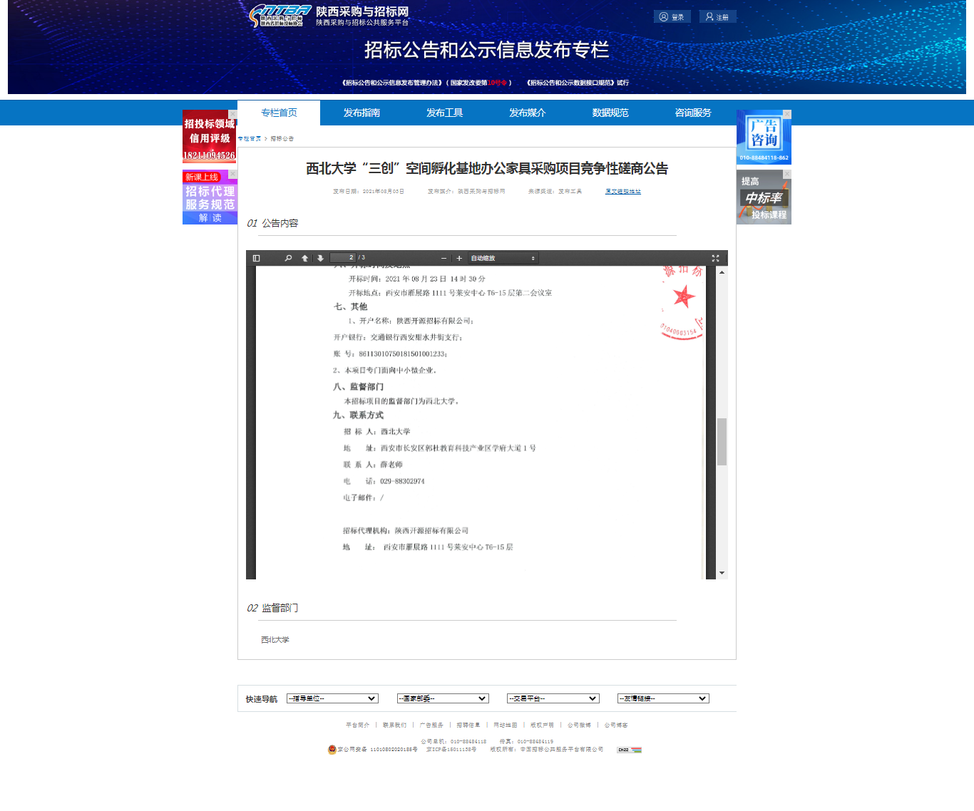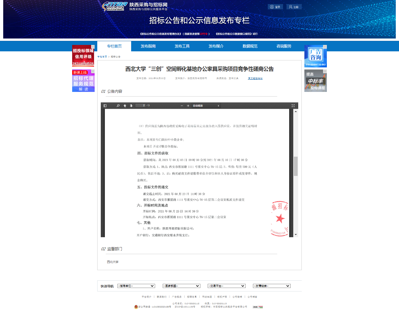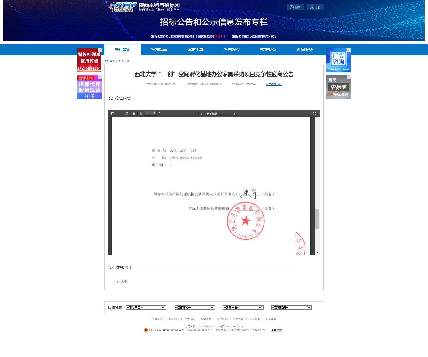 星空app官网“三创”空间孵化基地办公家具采购项目竞争性磋商公告 作者: 编辑:采购与招标办公室 时间:2021-08-04 原公告地址:http://bulletin.sntba.com/biddingBulletin/2021-08-03/326513.html