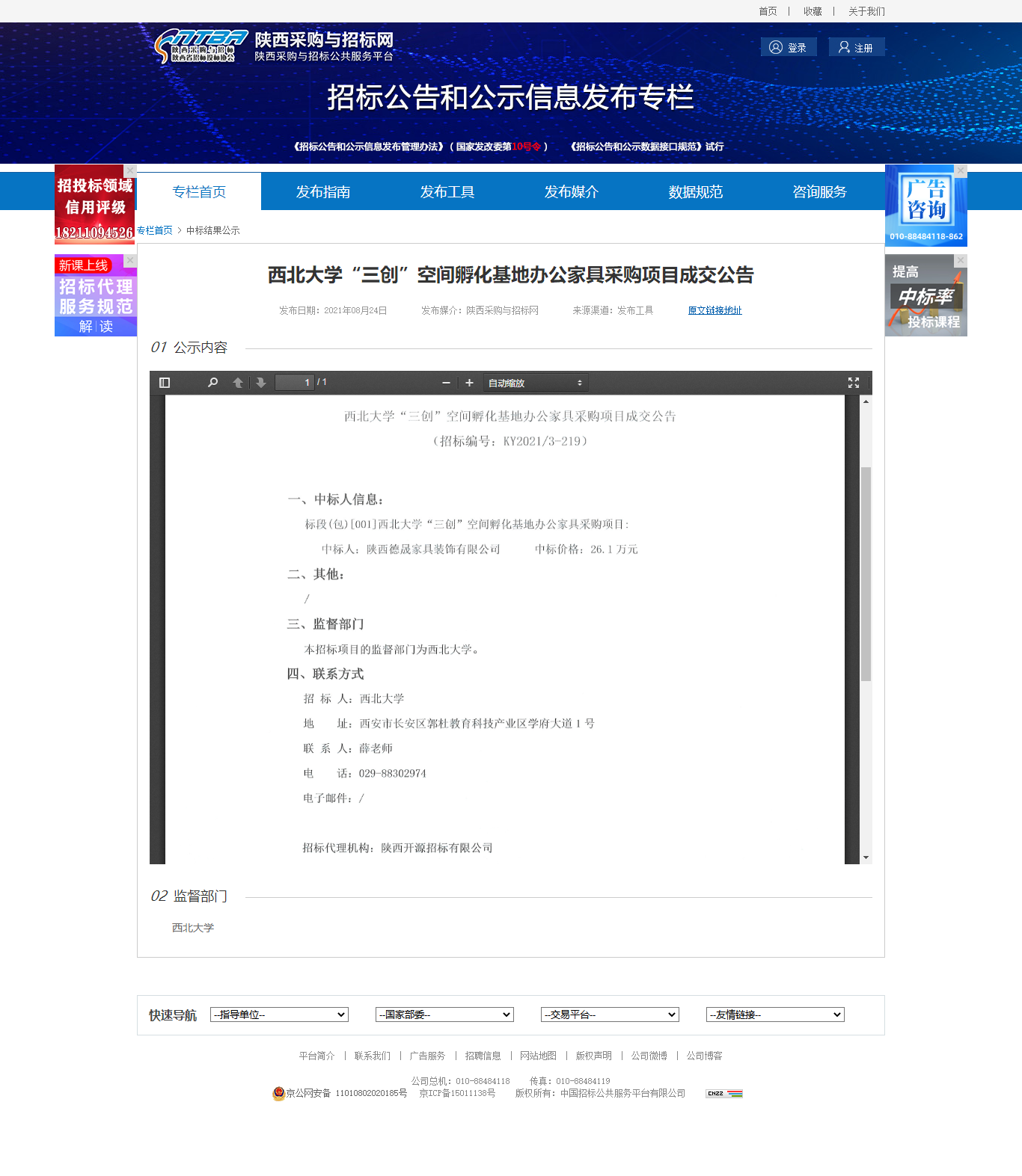 星空app官网“三创”空间孵化基地办公家具采购项目成交公告 作者: 编辑:采购与招标办公室 时间:2021-08-24 原公告地址:http://bulletin.sntba.com/resultBulletin/2021-08-24/334826.html