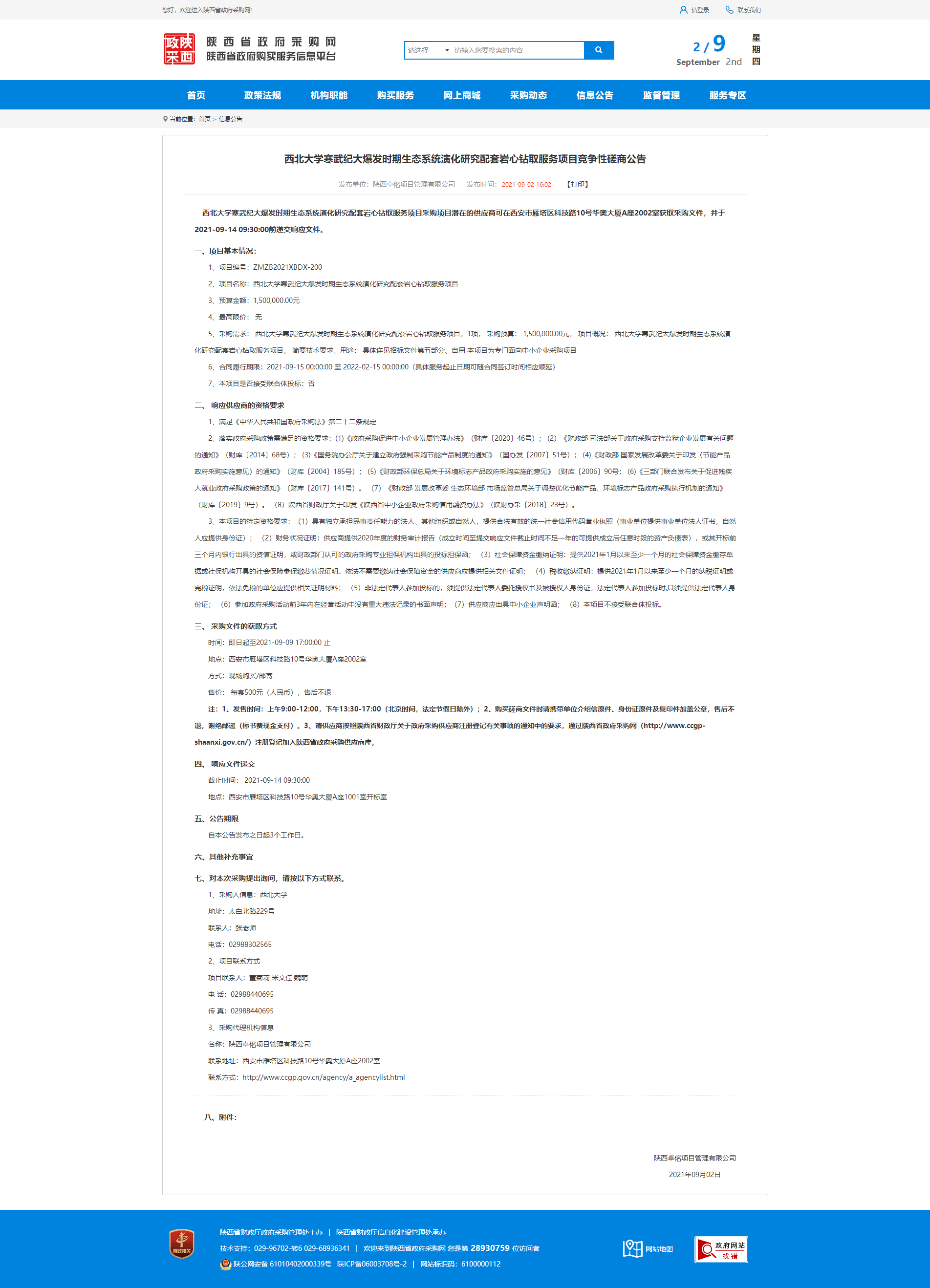 星空app官网寒武纪大爆发时期生态系统演化研究配套岩心钻取服务项目竞争性磋商公告
