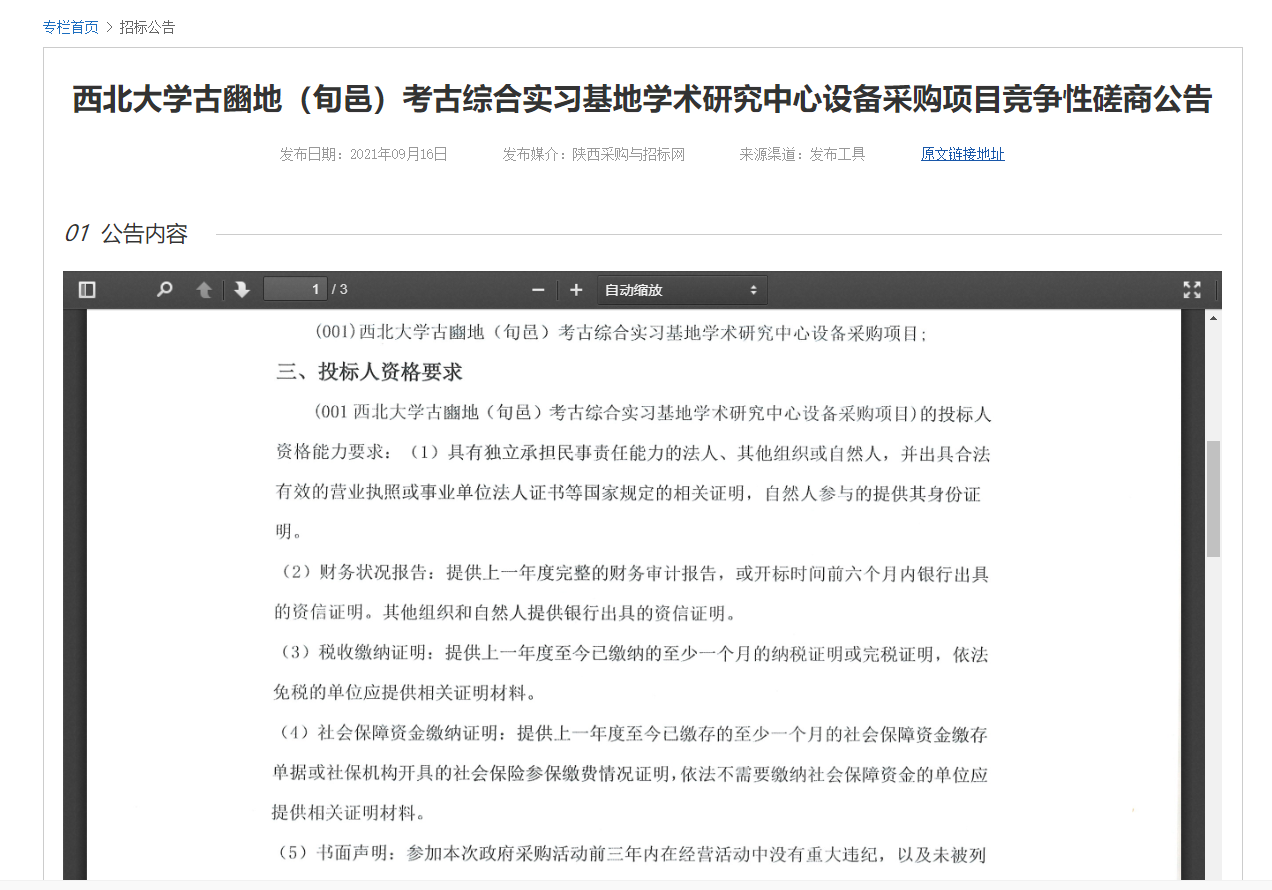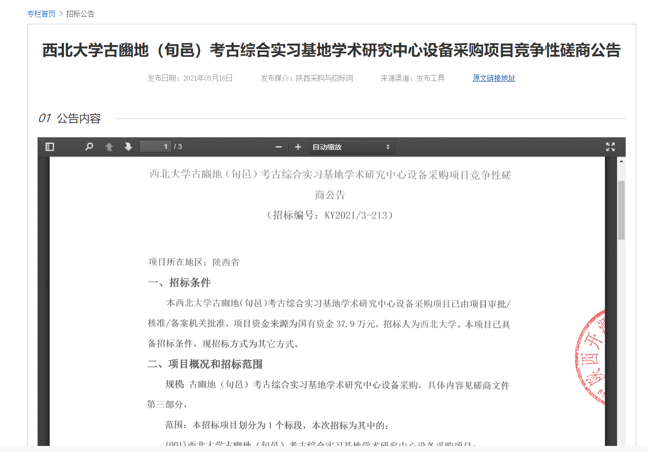 星空app官网古豳地(旬邑)考古综合实习基地学术研究中心设备采购项目竞争性磋商公告 作者: 编辑:采购与招标办公室 时间:2021-09-17 原公告地址:http://bulletin.sntba.com/biddingBulletin/2021-09-16/343879.html