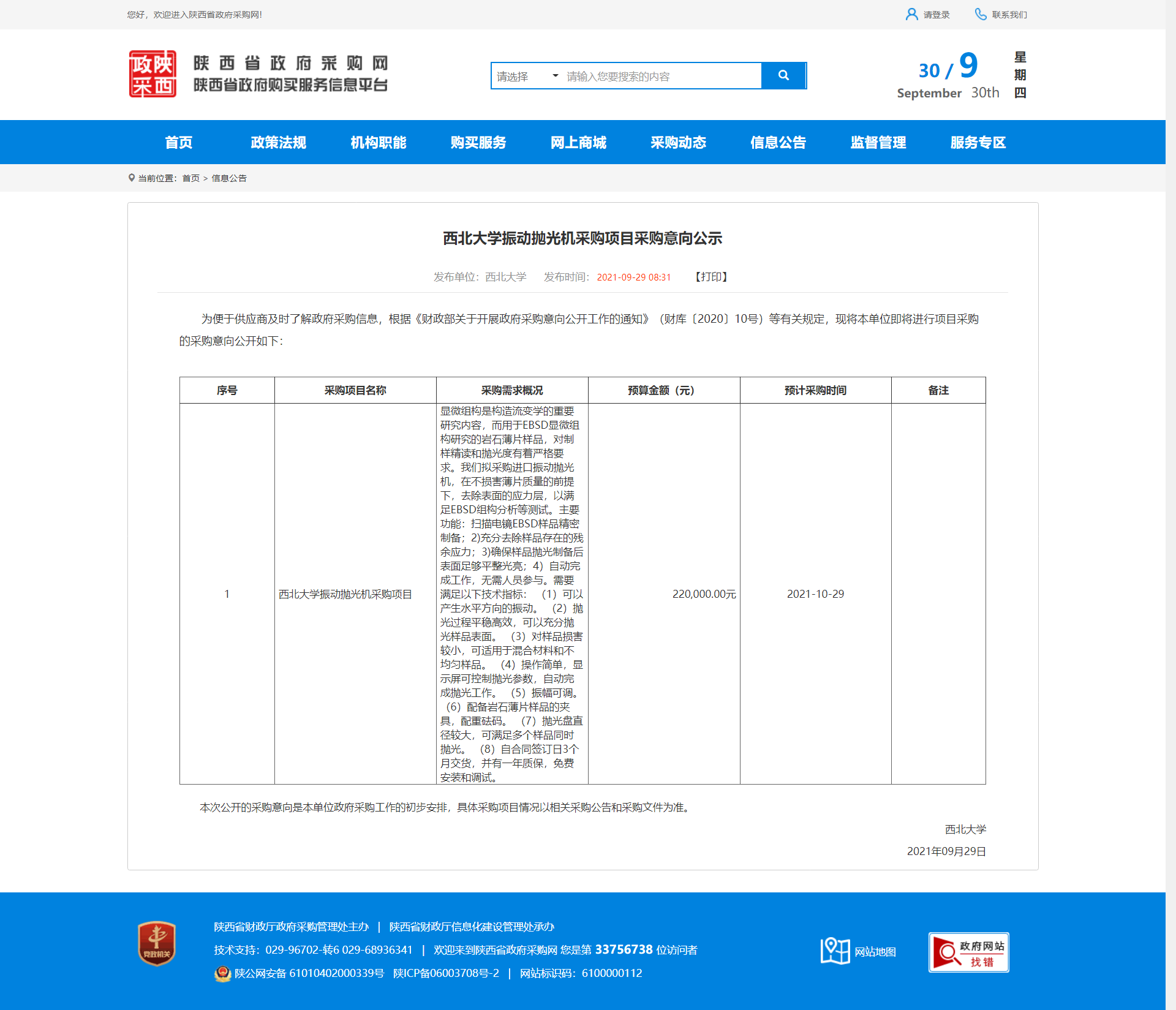 星空app官网振动抛光机采购项目采购意向公示 作者: 编辑:采购与招标办公室 时间:2021-09-30 原公告地址:http://www.ccgp-shaanxi.gov.cn/notice/noticeDetail.do?noticeguid=8a85be337c20d0b4017c2ef28a5109d6