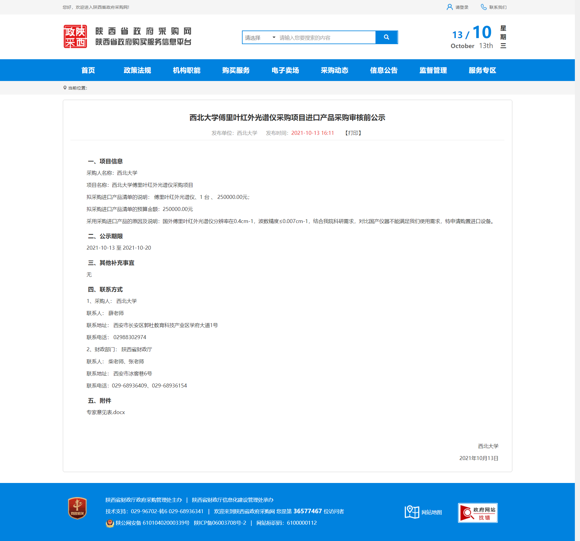 星空app官网傅里叶红外光谱仪采购项目进口产品采购审核前公示 作者: 编辑:采购与招标办公室 时间:2021-10-13 原公告地址:http://www.ccgp-shaanxi.gov.cn/notice/noticeDetail.do?noticeguid=8a85be327c20d508017c78afc0e74db6