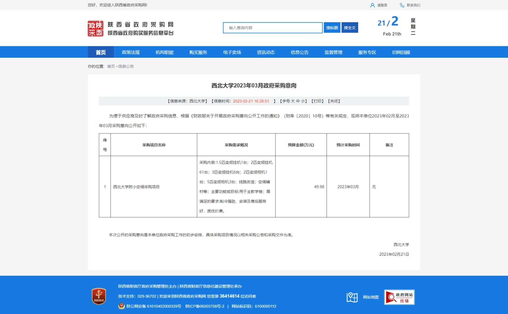 星空app官网2023年03月政府采购意向 作者: 编辑:星空app官网2023年03月政府采购意向 时间:2023-02-21 原公告链接:http://www.ccgp-shaanxi.gov.cn/freecms/site/shaanxi/ggxx/info/2023/8a69c1bf8671d1fe01867314431d2b89.html?noticeType=59¬iceId=7ee058eb-b1c2-11ed-9a8e-08c0eb20c666