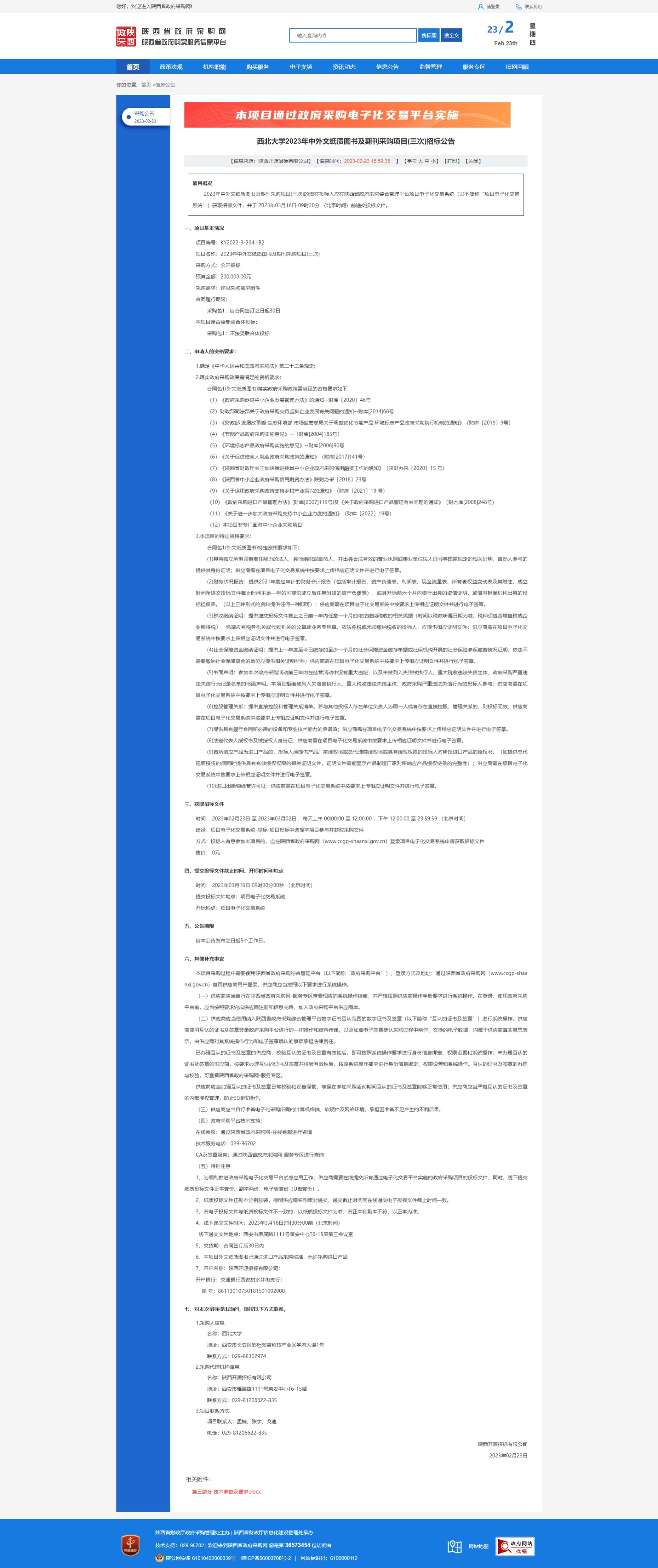 星空app官网2023年中外文纸质图书及期刊采购项目(三次)招标公告 作者: 编辑:采购与招标办公室 时间:2023-02-23 原公告链接:http://www.ccgp-shaanxi.gov.cn/freecms/site/shaanxi/ggxx/info/2023/8a69c672865ced8c01867d3e22983dee.html?noticeType=001011¬iceId=de2454c9-b350-11ed-9a8e-08c0eb20c666