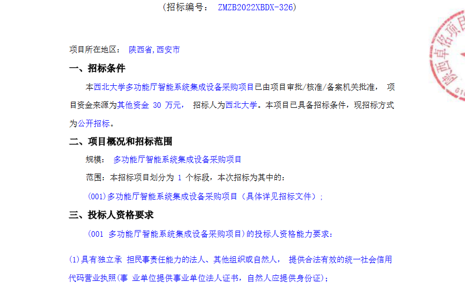 星空app官网多功能厅智能系统集成设备采购项目公开招标公告 作者: 编辑:采购与招标办公室 时间:2023-02-28 原公告链接:http://bulletin.sntba.com/biddingBulletin/2023-02-28/531633.html