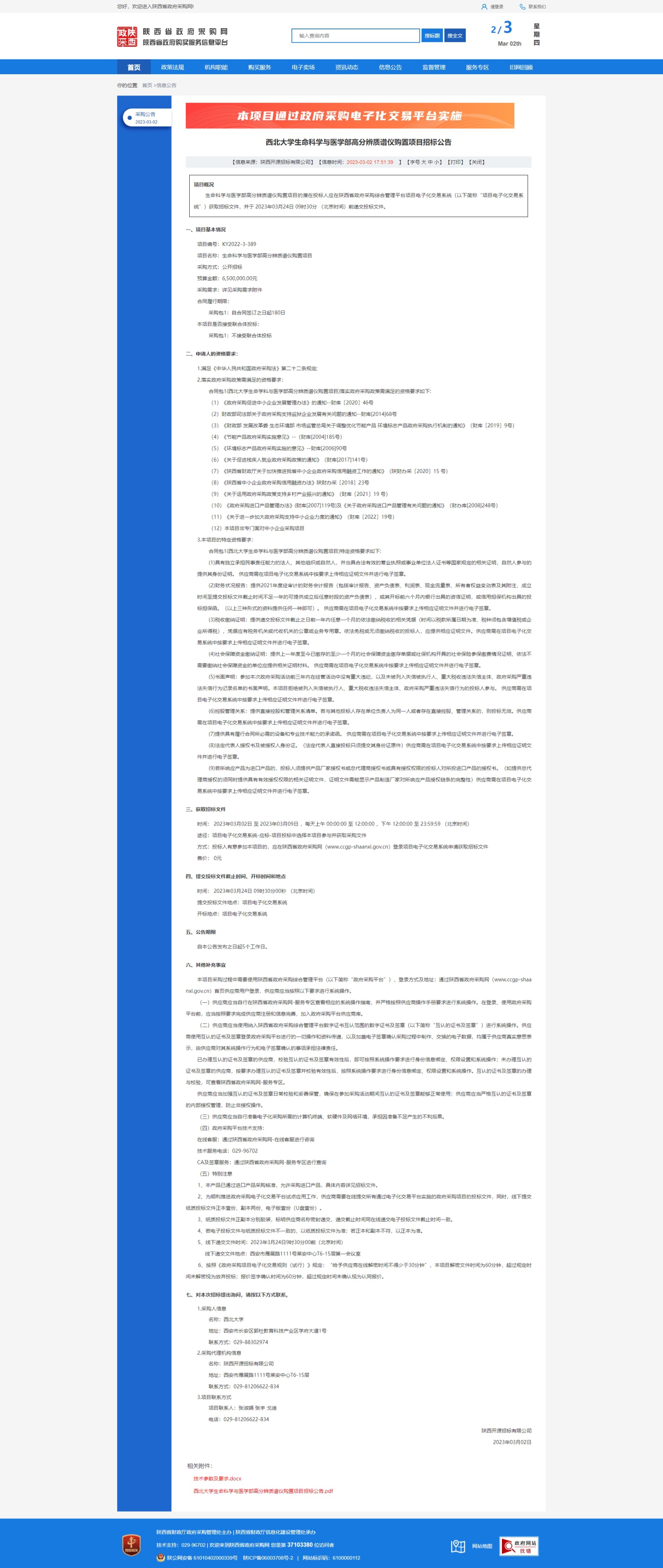 星空app官网生命科学与医学部高分辨质谱仪购置项目招标公告 作者: 编辑:星空app官网生命科学与医学部高分辨质谱仪购置项目招标公告 时间:2023-03-02 原公告链接:http://www.ccgp-shaanxi.gov.cn/freecms/site/shaanxi/ggxx/info/2023/8a69c672865ced8c0186a1b621a32b5e.html?noticeType=001011¬iceId=b2ba605b-b8e0-11ed-9a8e-08c0eb20c666