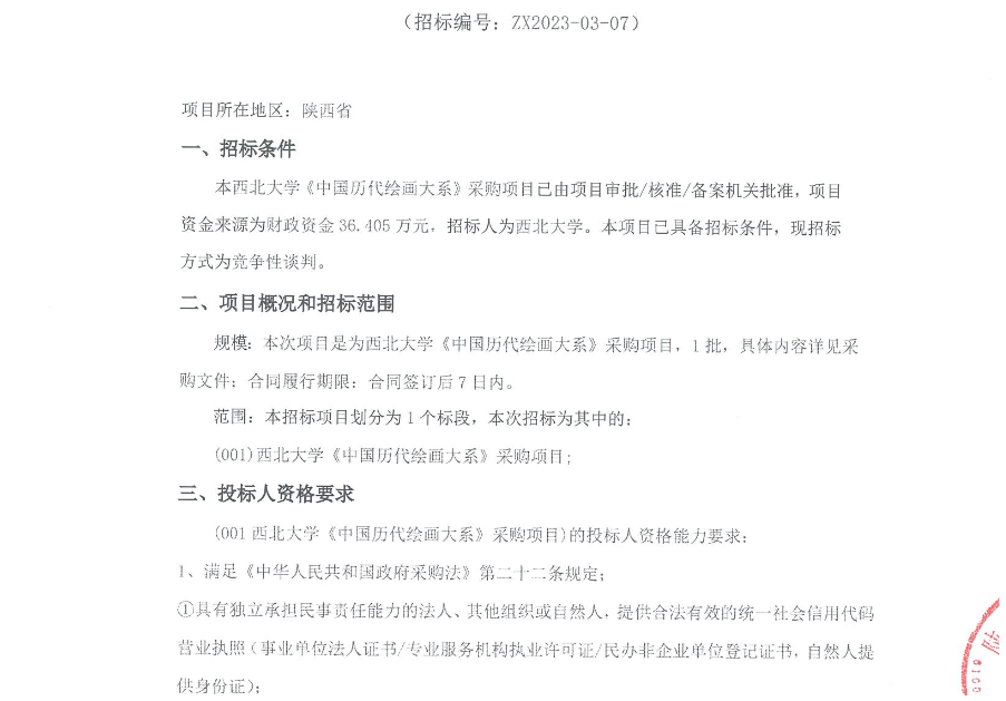 星空app官网《中国历代绘画大系》采购项目竞争性谈判公告 作者: 编辑:采购与招标办公室 时间:2023-04-18 原公告链接:http://bulletin.sntba.com/biddingBulletin/2023-04-18/548646.html