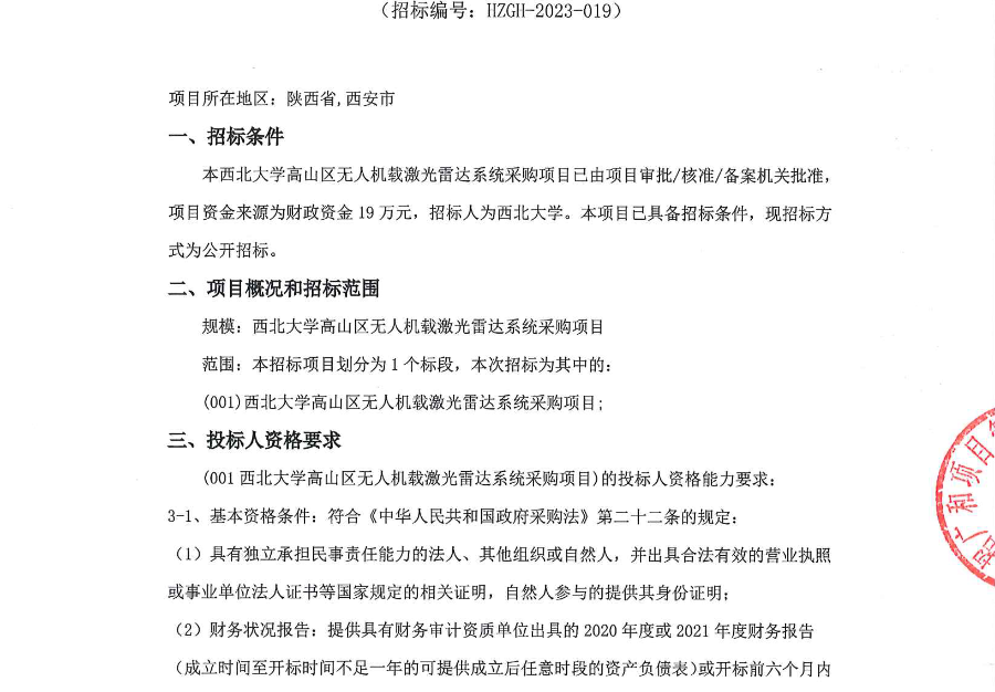 星空app官网高山区无人机载激光雷达系统采购项目招标公告 作者: 编辑:采购与招标办公室 时间:2023-06-14 原公告链接:http://bulletin.sntba.com/biddingBulletin/2023-06-14/572031.html