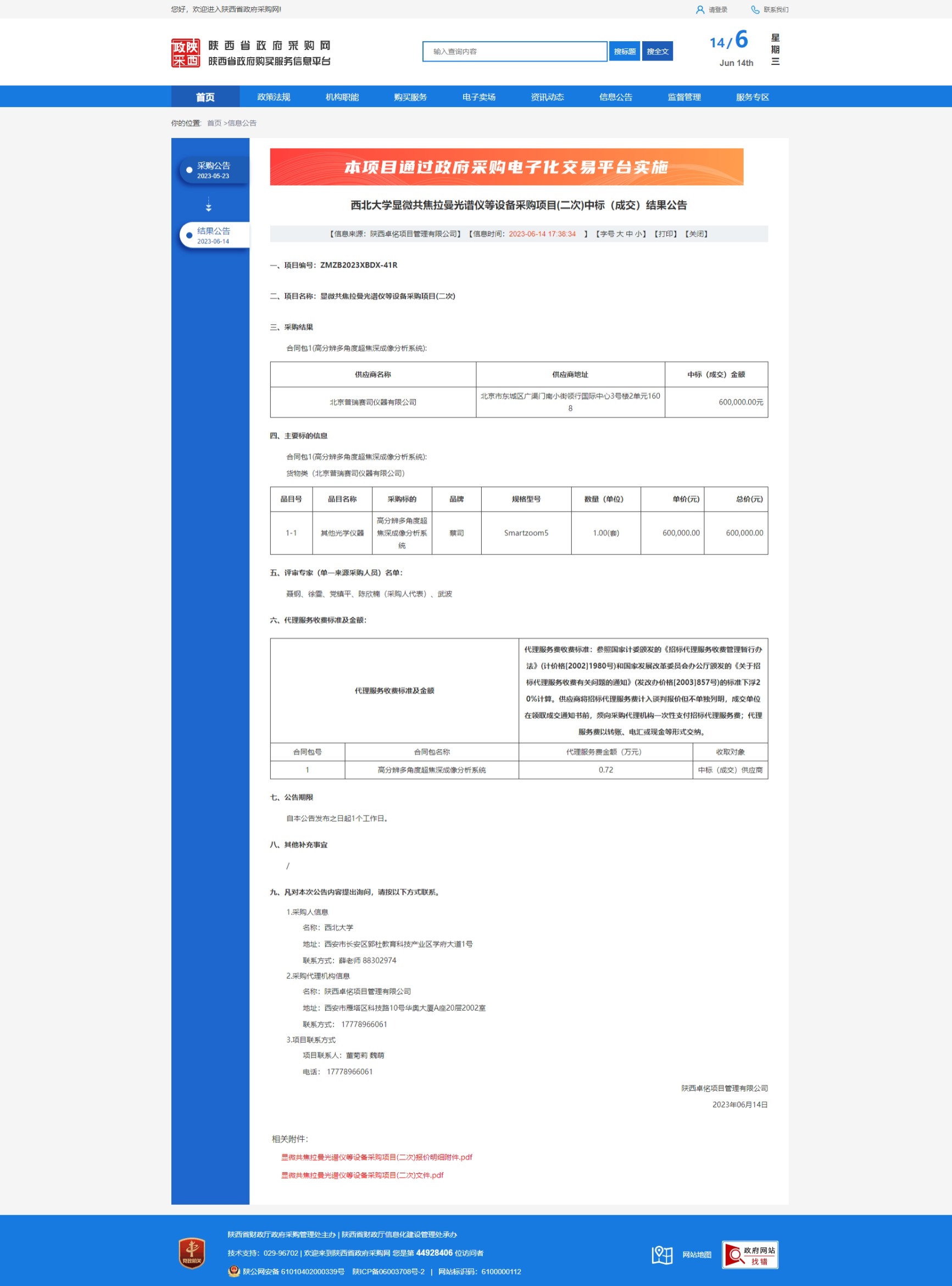 星空app官网显微共焦拉曼光谱仪等设备采购项目(二次)中标(成交)结果公告 作者: 编辑:采购与招标办公室 时间:2023-06-14 原公告链接:http://www.ccgp-shaanxi.gov.cn/freecms/site/shaanxi/ggxx/info/2023/8a69c931884486120188b8d4381d4cd9.html?noticeType=001021¬iceId=4b37b9ac-0a98-11ee-9a8e-08c0eb20c666