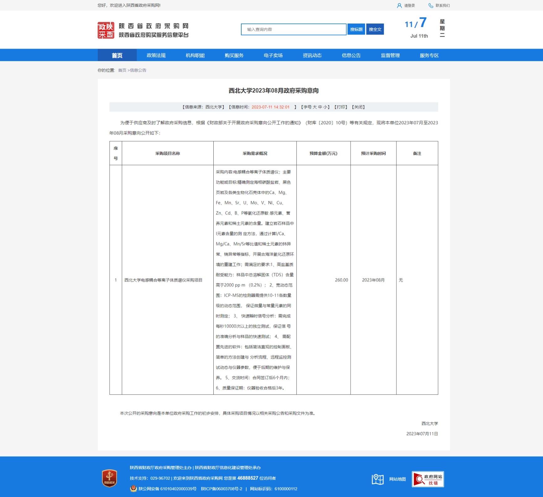 星空app官网2023年08月政府采购意向 作者: 编辑:采购与招标办公室 时间:2023-07-11 原公告链接:http://www.ccgp-shaanxi.gov.cn/freecms/site/shaanxi/ggxx/info/2023/8a69c1f4893dd1c301893e96750d16d6.html?noticeType=59¬iceId=c1894944-1fb5-11ee-9a8e-08c0eb20c666
