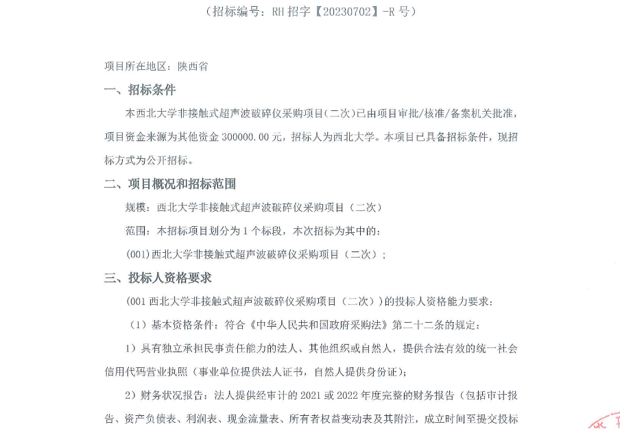 星空app官网非接触式超声波破碎仪采购项目(二次)招标公告 作者: 编辑:采购与招标办公室 时间:2023-09-08 原公告链接:http://bulletin.sntba.com/biddingBulletin/2023-09-08/653833.html