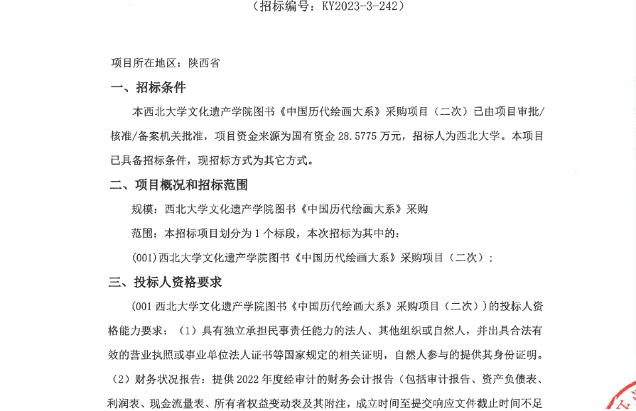 星空app官网文化遗产学院图书《中国历代绘画大系》采购项目(二次)竞争性谈判公告 作者: 编辑:采购与招标办公室 时间:2023-09-22 原公告链接:http://bulletin.sntba.com/biddingBulletin/2023-09-21/678342.html