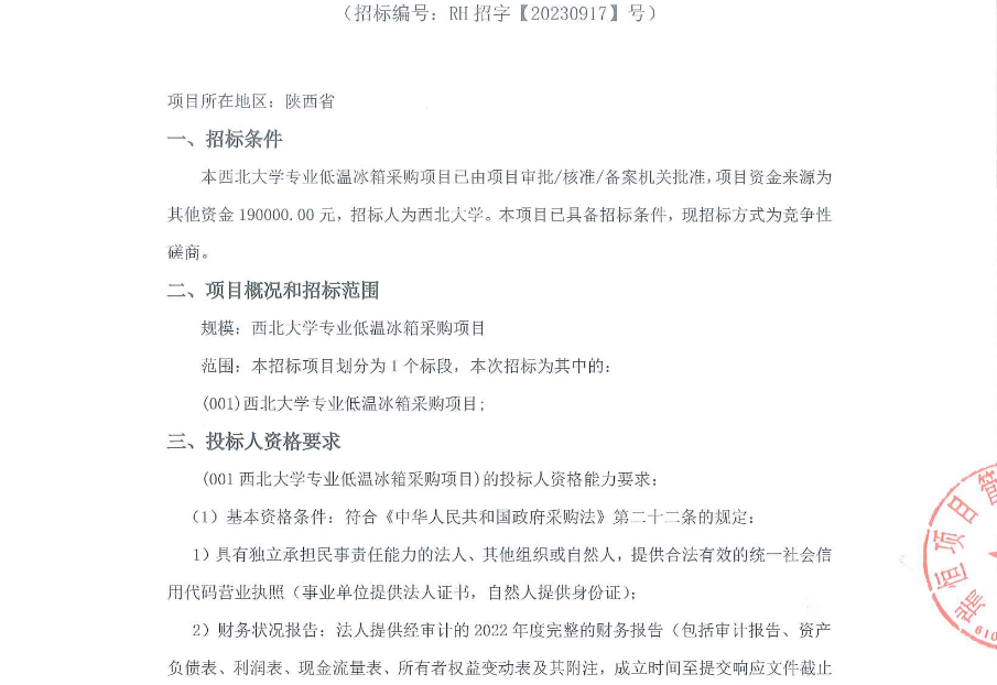 星空app官网专业低温冰箱采购项目竞争性磋商公告 作者: 编辑:采购与招标办公室 时间:2023-09-22 原公告链接:http://bulletin.sntba.com/biddingBulletin/2023-09-22/680755.html