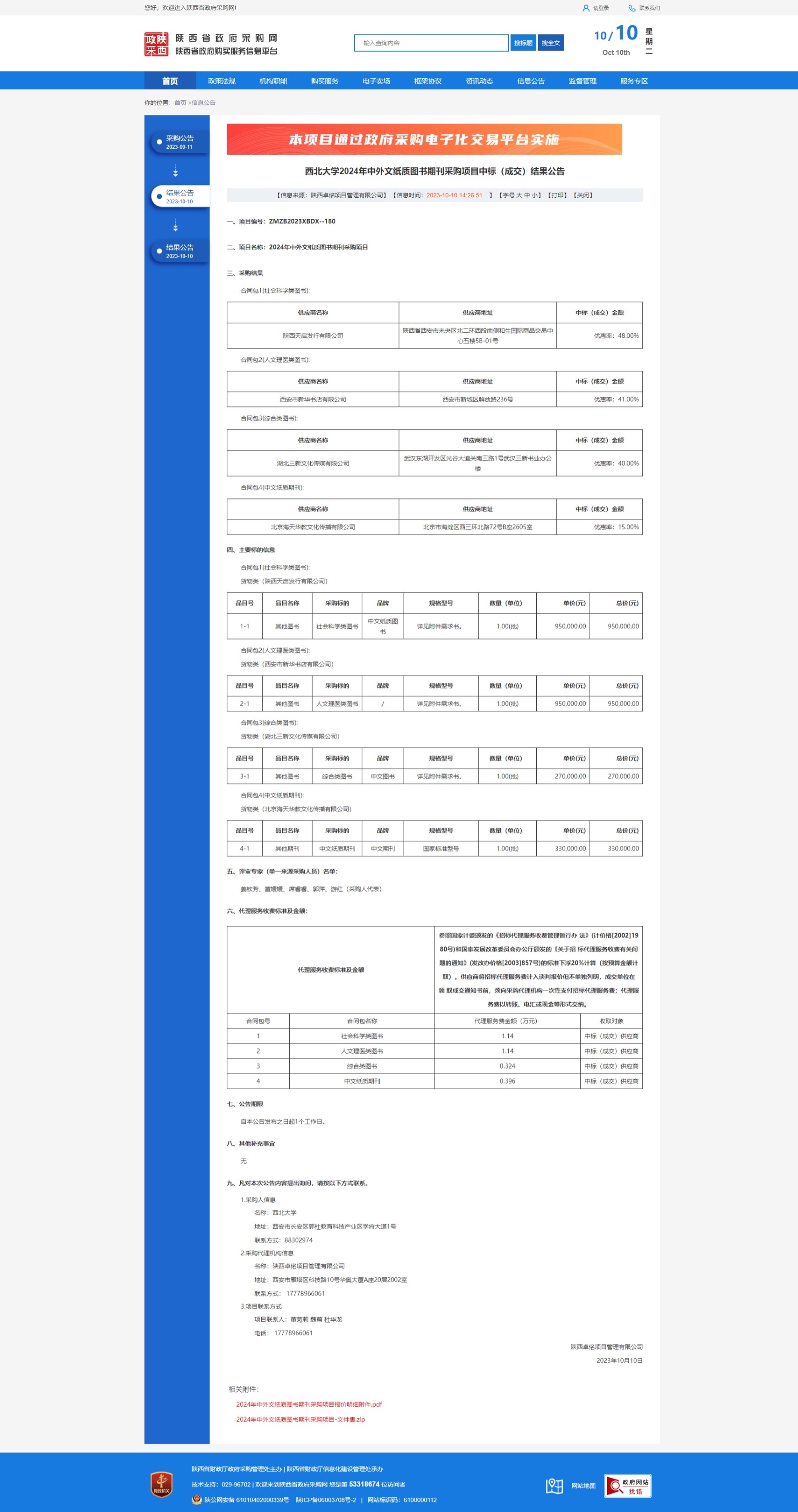 星空app官网2024年中外文纸质图书期刊采购项目中标(成交)结果公告 作者: 编辑:采购与招标办公室 时间:2023-10-10 原公告链接:http://www.ccgp-shaanxi.gov.cn/freecms/site/shaanxi/ggxx/info/2023/8a69c0d48b09a0fd018b183eb8b4195d.html?noticeType=001006¬iceId=f7404a69-673a-11ee-9a8e-08c0eb20c666