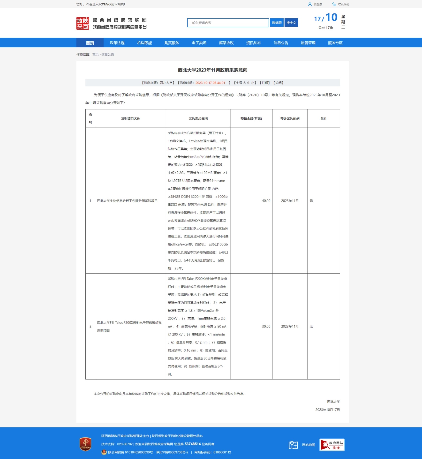 星空app官网2023年11月政府采购意向 作者: 编辑:采购与招标办公室 时间:2023-10-17 原公告链接:http://www.ccgp-shaanxi.gov.cn/freecms/site/shaanxi/ggxx/info/2023/8a69c1288b1ca82f018b1da2697d31f0.html?noticeType=59¬iceId=8cf5519b-6c87-11ee-9a8e-08c0eb20c666