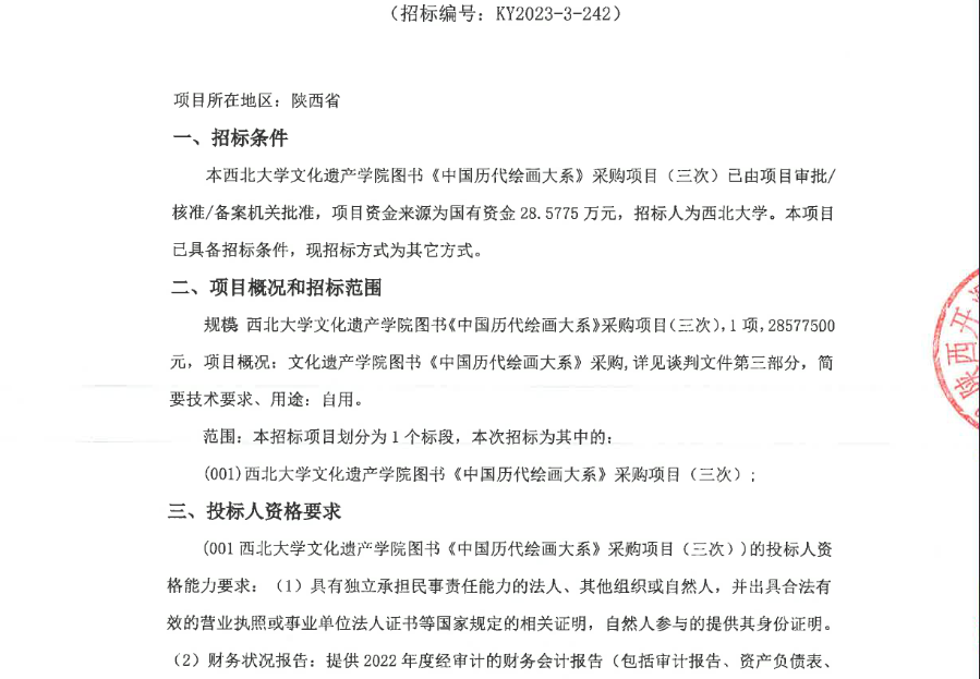 星空app官网文化遗产学院图书《中国历代绘画大系》采购项目(三次)竞争性谈判公告 作者: 编辑:采购与招标办公室 时间:2023-10-17 原公告链接:http://bulletin.sntba.com/biddingBulletin/2023-10-17/734748.html