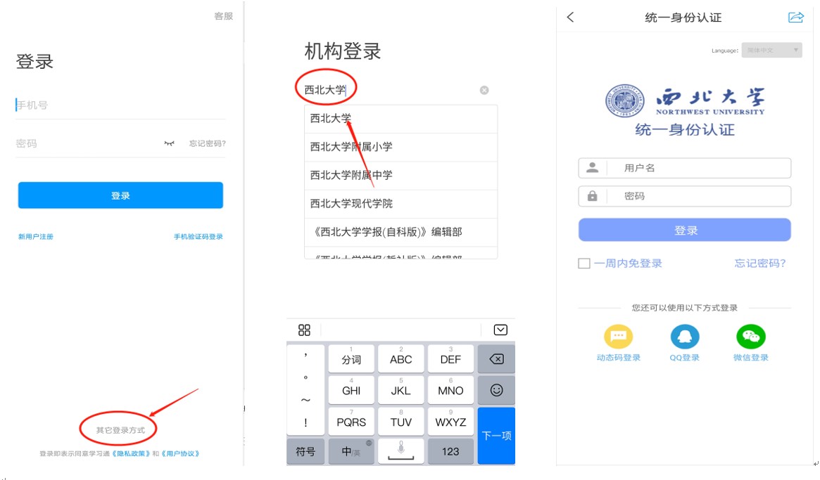 5.下载过后,进入登录页面——“其它登录方式”——单位栏输入“星空app官网”——跳转到学校统一身份认证登录。