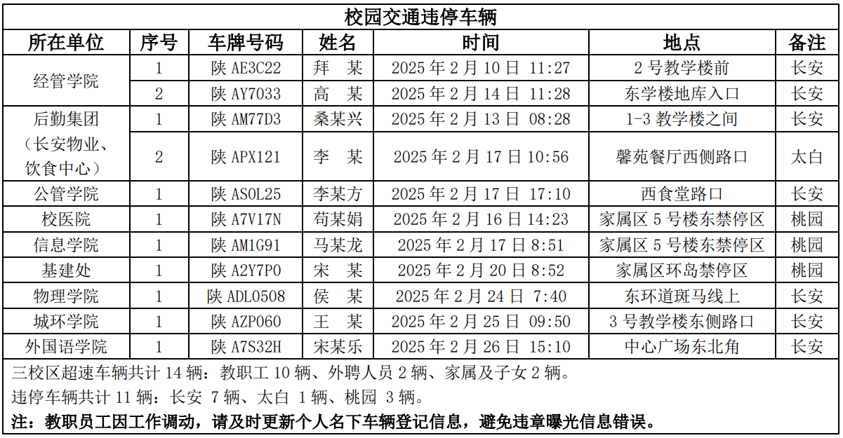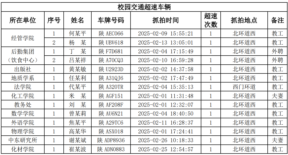 为进一步加强校园交通管理,保障校园交通安全有序,维护学校正常的教学、科研和生活秩序,切实保护师生员工的人身财产安全,根据《星空app官网校园交通安全管理规定》的相关要求,现将2025年2月校园交通违章车辆予以曝光,具体要求与违章信息如下。