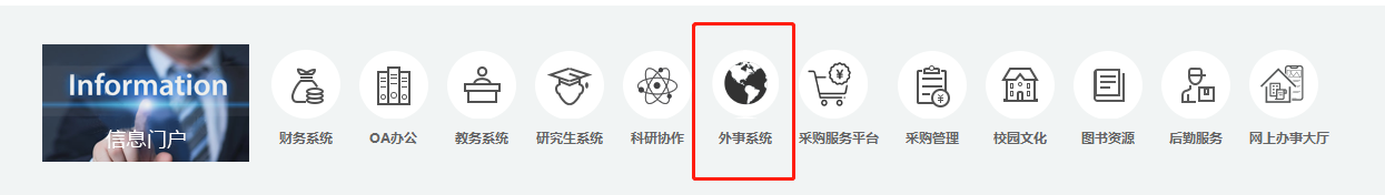 在学校官网星空官方网站(中国)下方“信息门户”快捷图标中,点击“外事系统”图标,登录后可进行业务办理及审批。
