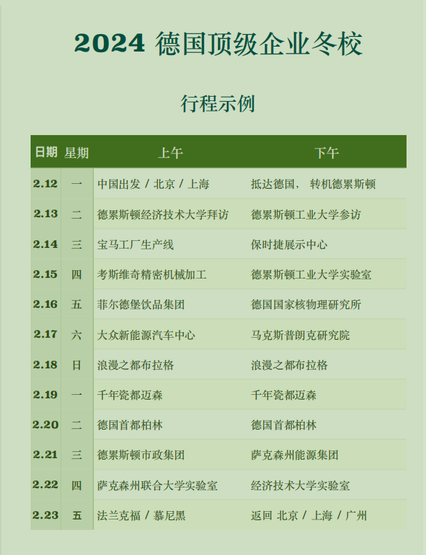 为提升学生全球竞争力,星空app官网将在“学生海外访学计划”的框架下开展系列国际交流项目,引导学生积极参与境外高水平大学线上线下课程学习与科学研究,今年将继续推荐优秀学生参加“2024年德国顶级企业冬校项目”,现将具体信息通知如下: