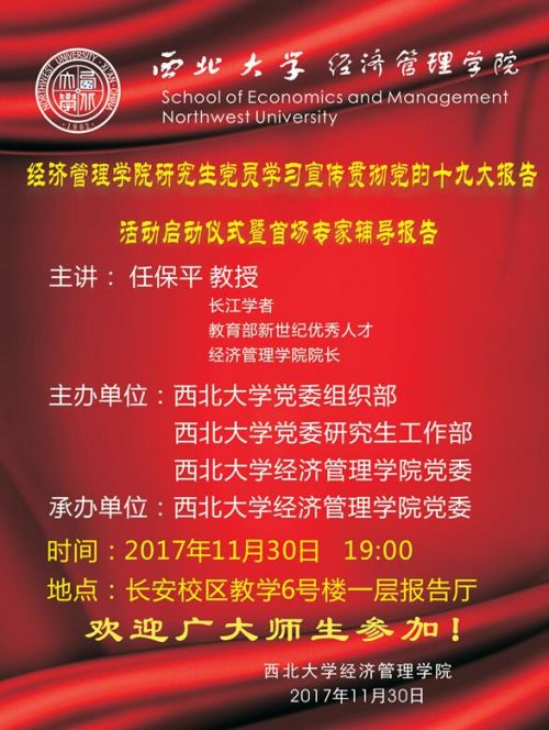 经济管理学院研究生党员学习宣传贯彻党的十九大报告活动启动仪式暨首场专家辅导报告