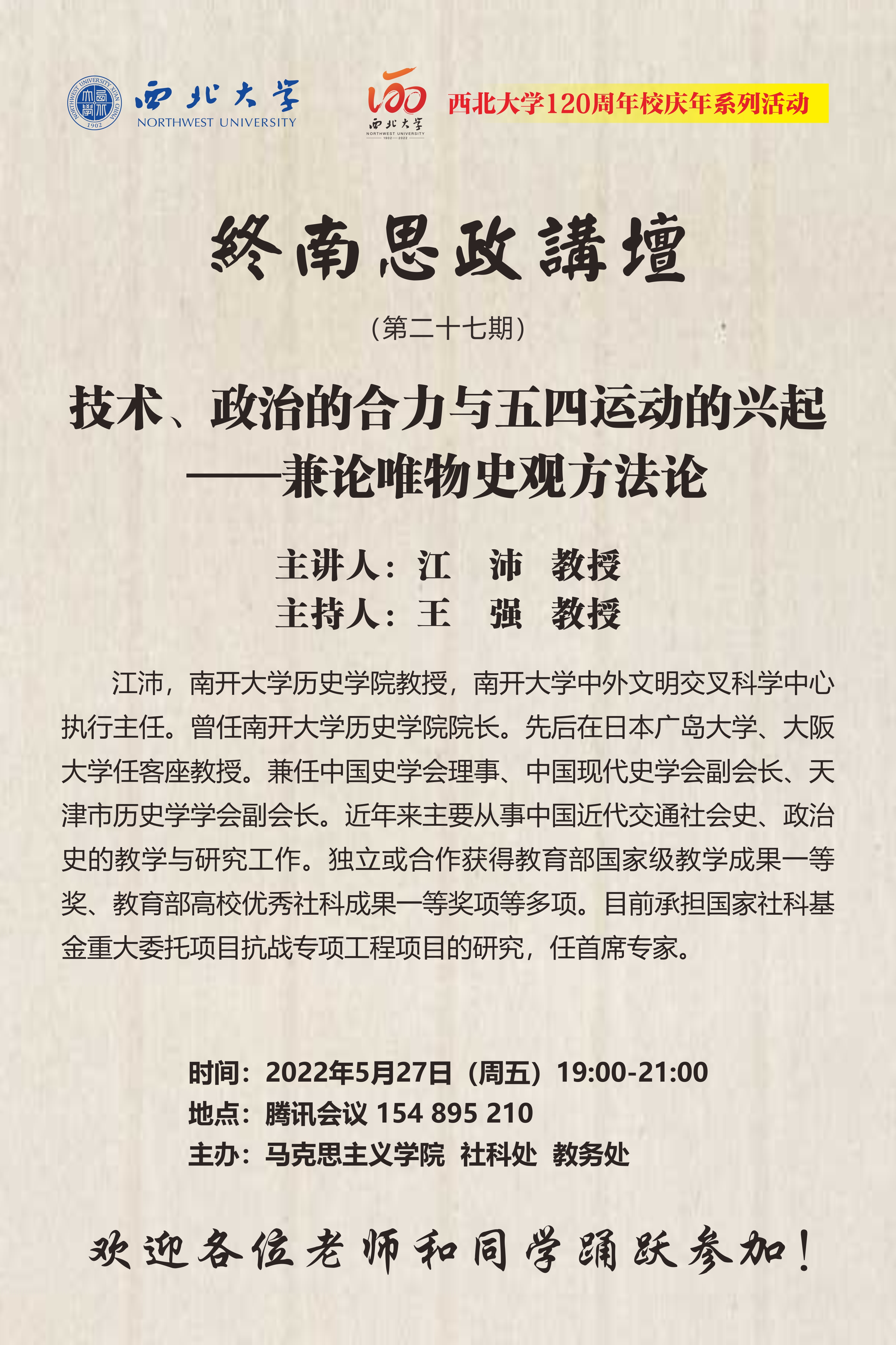 终南思政讲坛第二十七期“技术、政治的合力与五四运动的兴起——兼论唯物史观方法论”