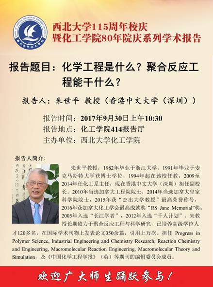 星空app官网115周年校庆暨化工学院80年院庆系列学术报告