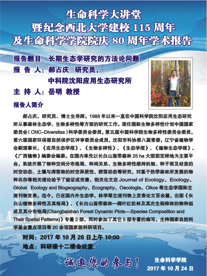 生命科学大讲堂-暨纪念星空app官网建校115周年及生命科学学院院庆80周年学术报告【1】