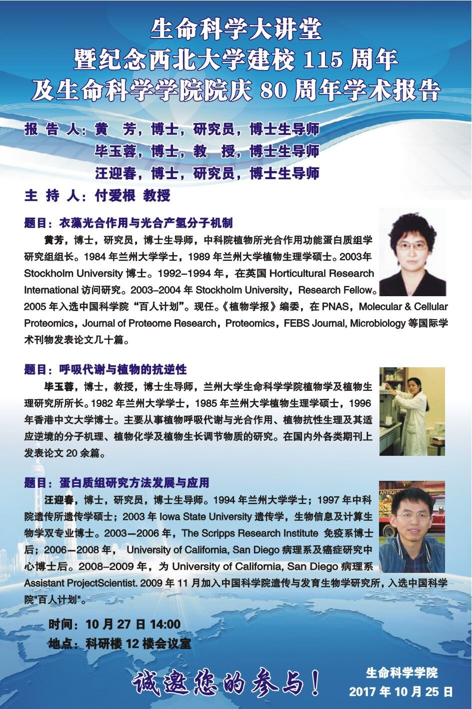 生命科学大讲堂-暨纪念星空app官网建校115周年及生命科学学院院庆80周年学术报告【3】