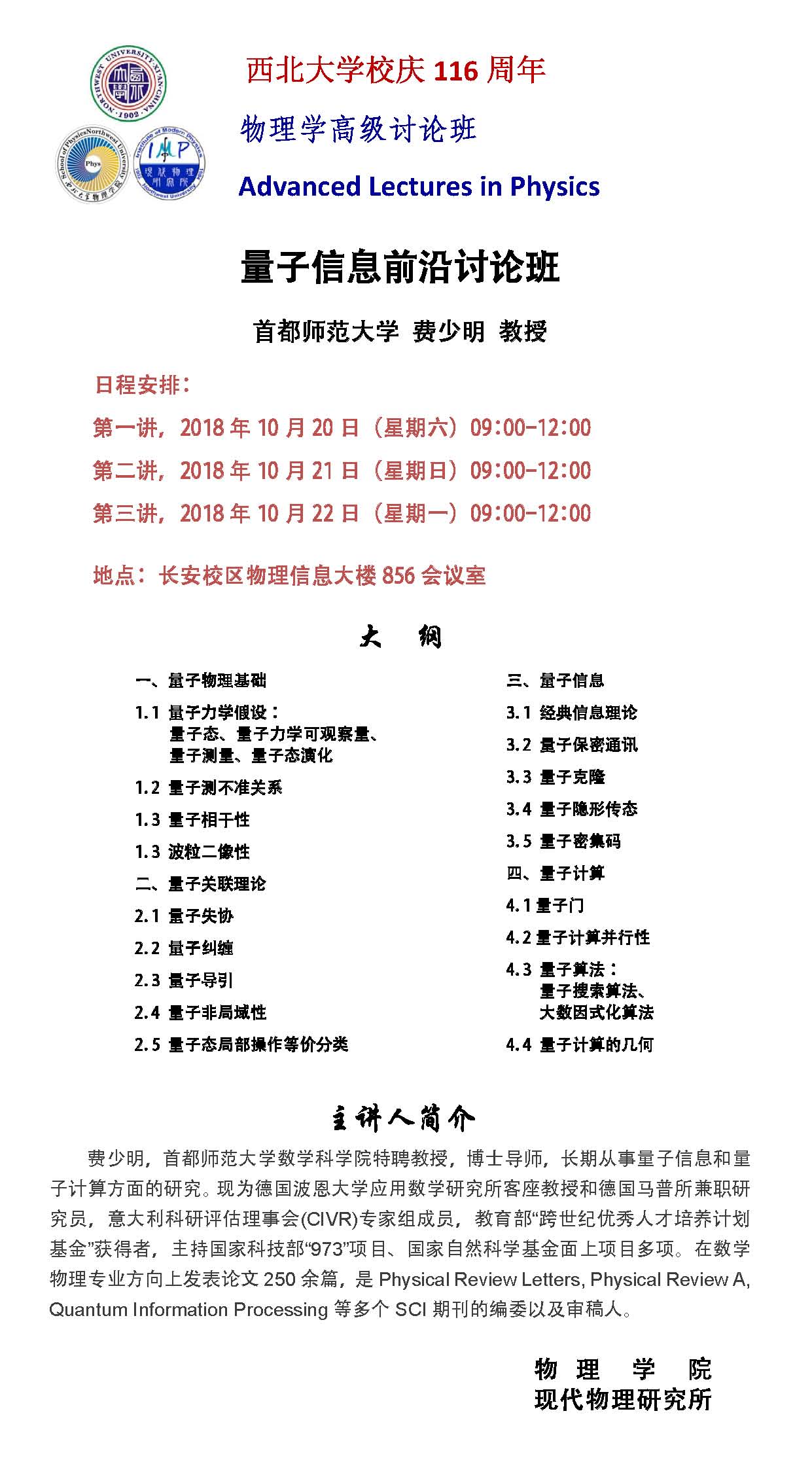 星空app官网校庆116周年物理学高级讨论班-量子信息前沿